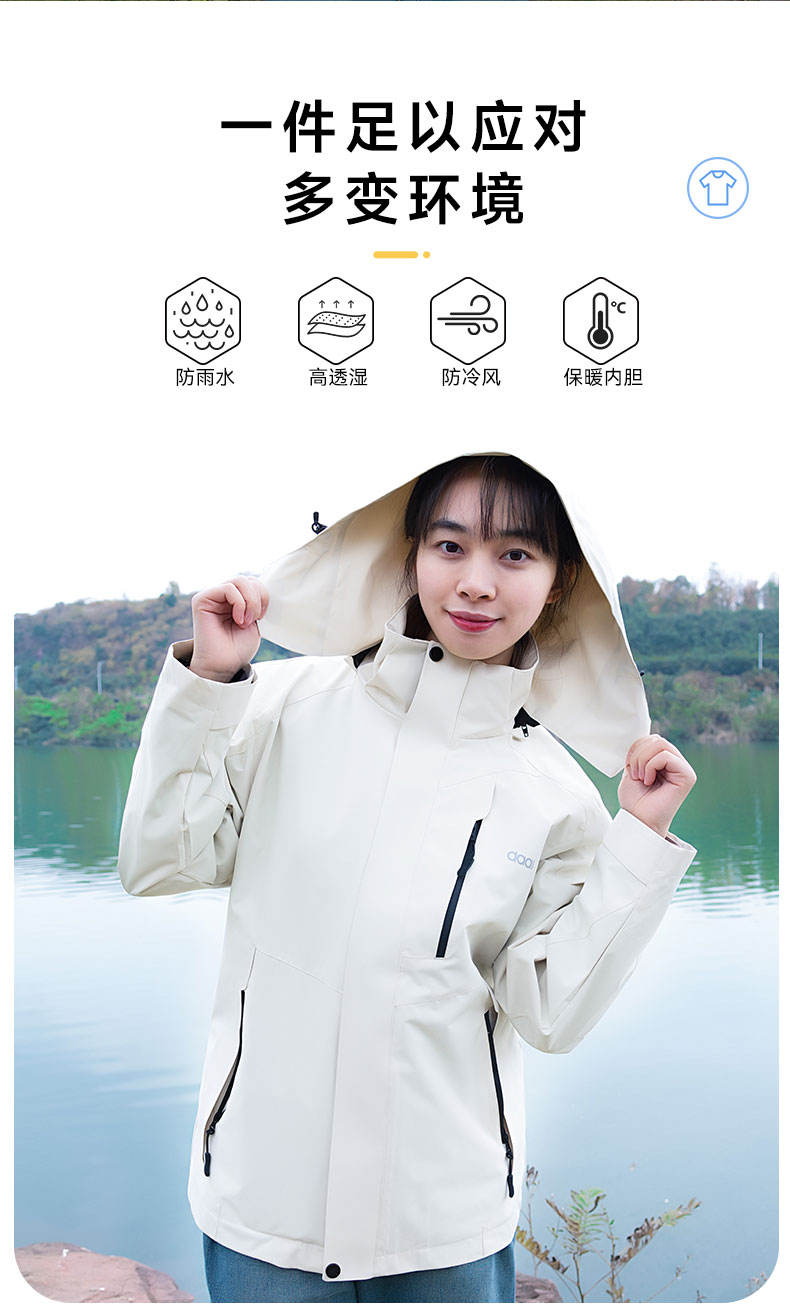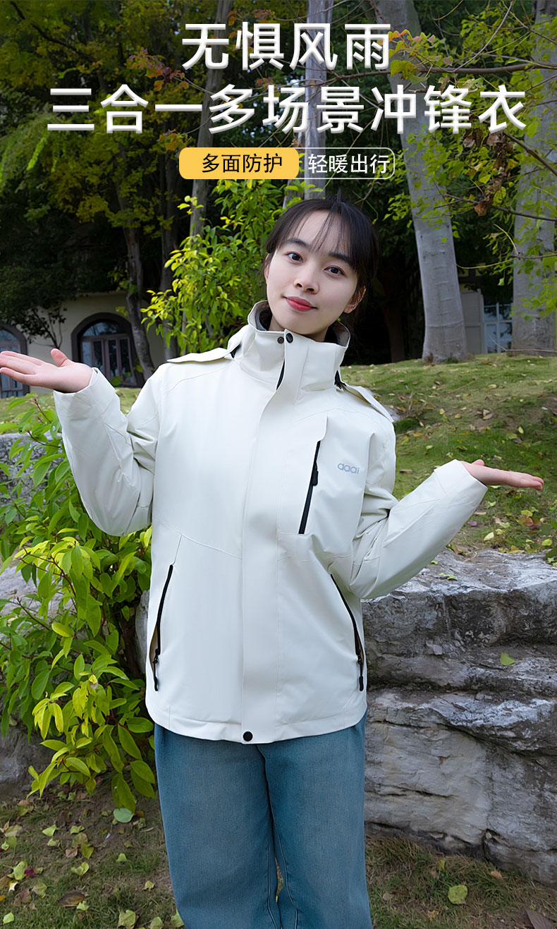 大爱感恩科技米白色三合一冲锋衣每件耗用25个塑料瓶再生而成新年焕新衣环保迎春礼赠佳选