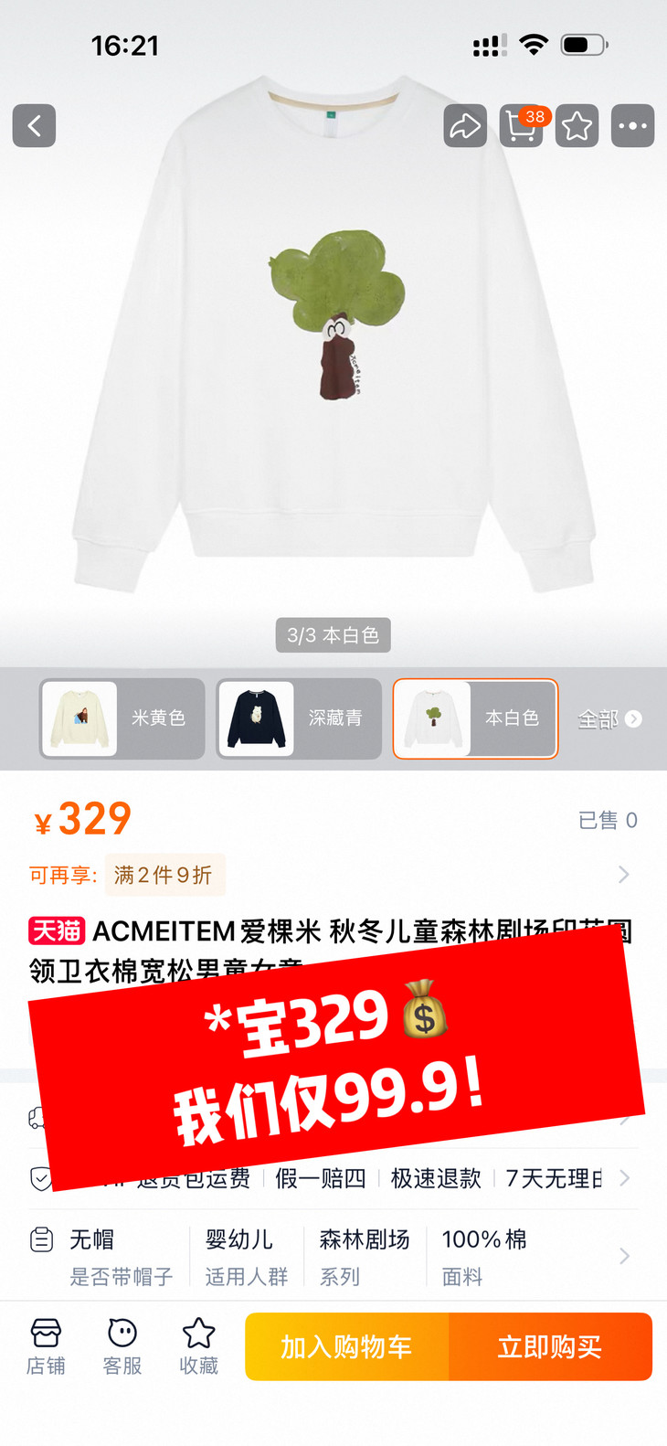 【不退不换,手慢无!抢到就是赚到!】爱棵米森林剧场儿童印花圆领卫衣100%棉,原价大几百❗️现抄底价99.9元!清仓库存变动大,如遇缺货,将会缺货商品团里直接退款GAG3310868E