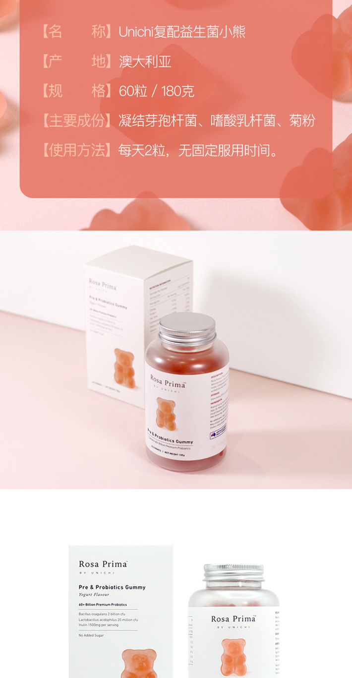 【保税仓】澳洲 Unichi 益生菌小熊软糖60粒 调理肠胃