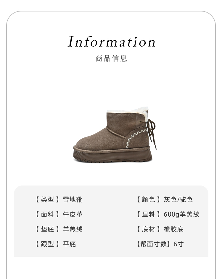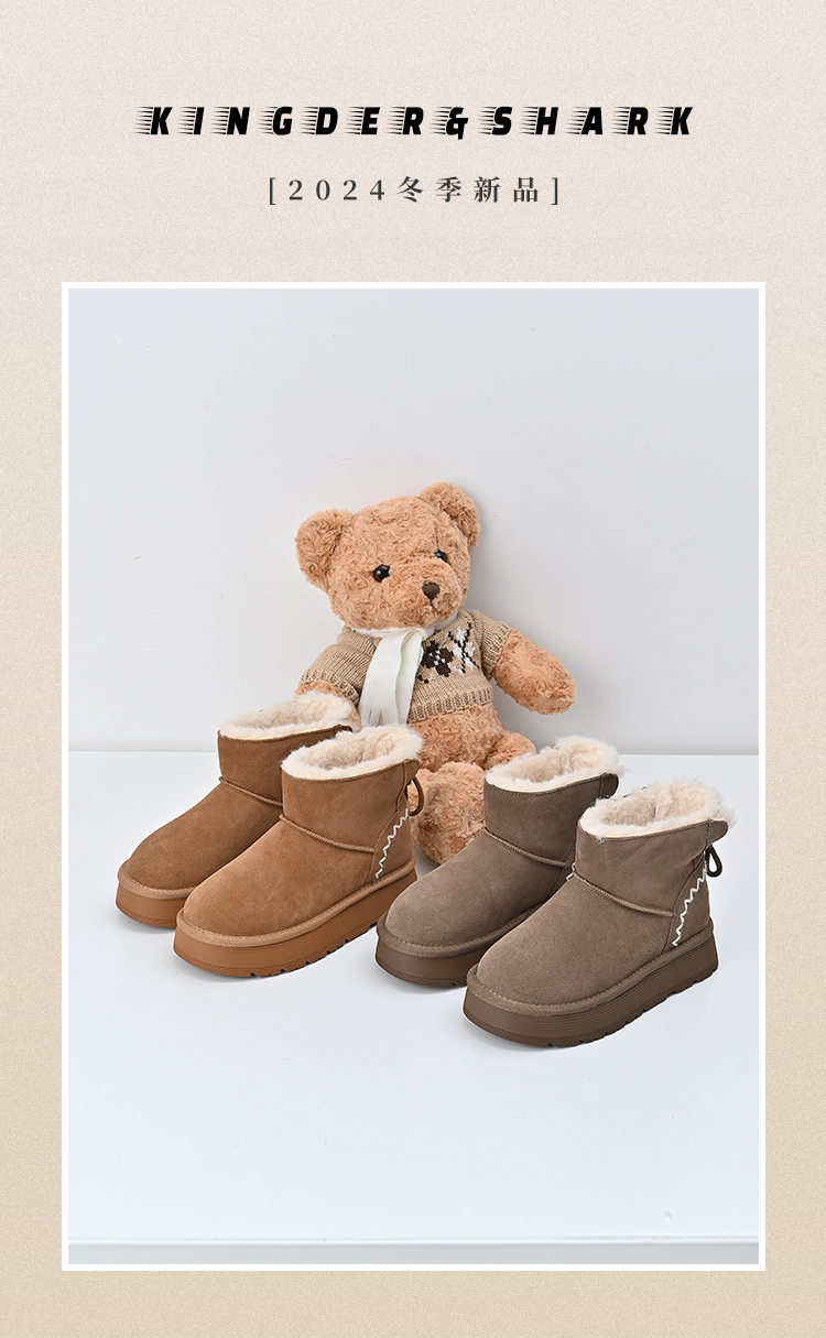 经典鲨2024冬季新款时尚韩版加绒加厚保暖平底舒适雪地靴女KW280-D58031