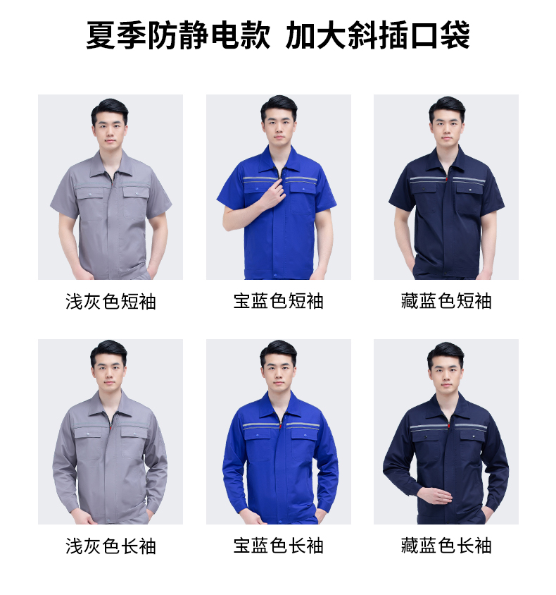 梵可梵薄款防静电工作服套装男女士短袖劳保工人长袖工地厂服工装定制