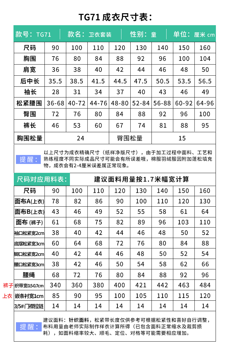 裁缝学苑TG71 儿童卫衣纸样春秋服装打版裁剪图外套上衣女童样板