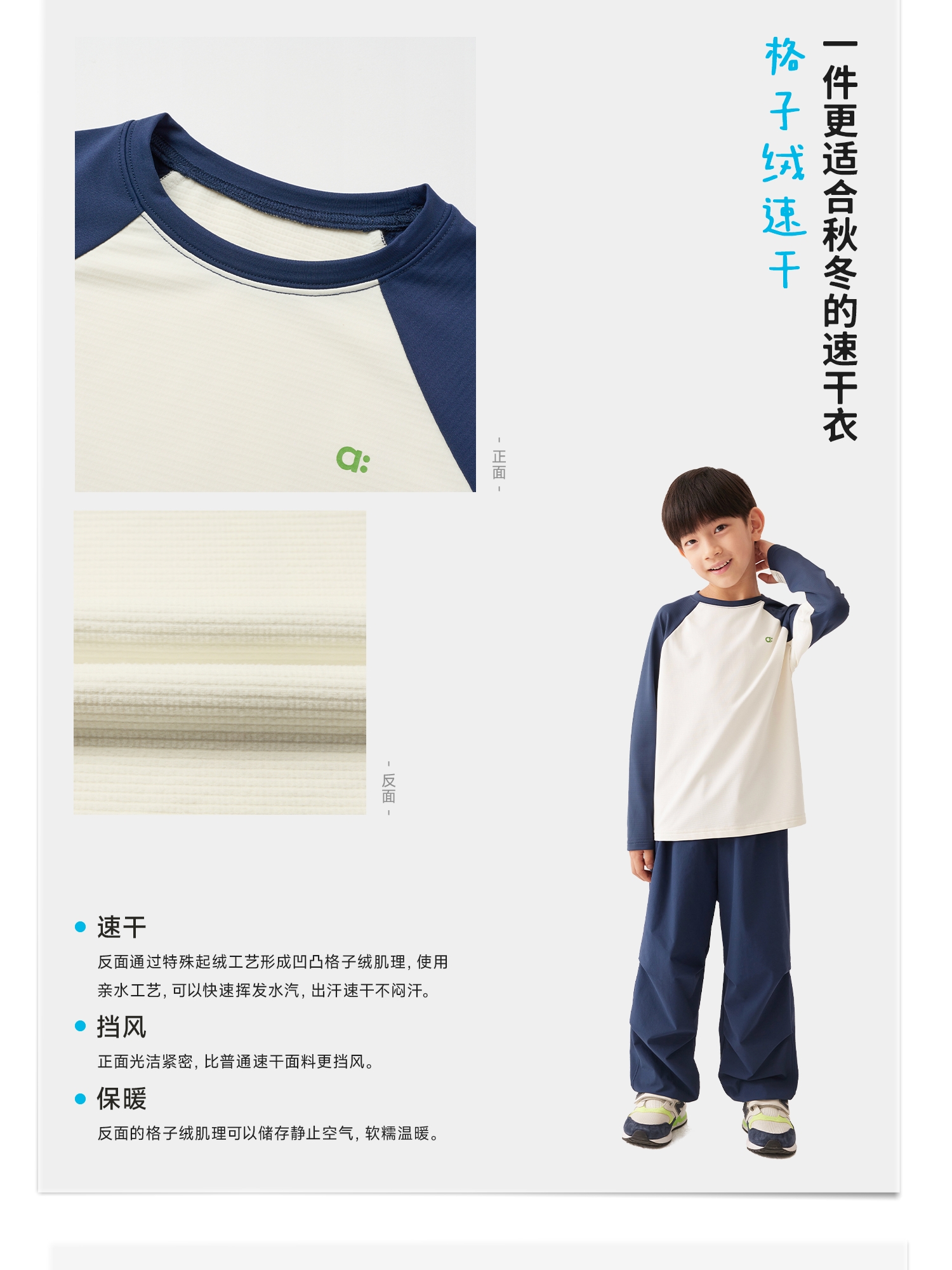 【秋Vol.2】幼岚童装「格子绒速干」挡风保暖插肩袖T恤24秋季新款儿童男女童ZY