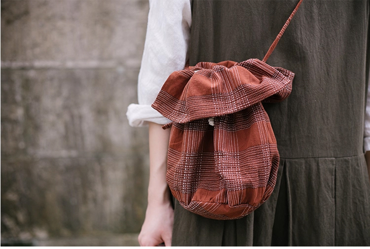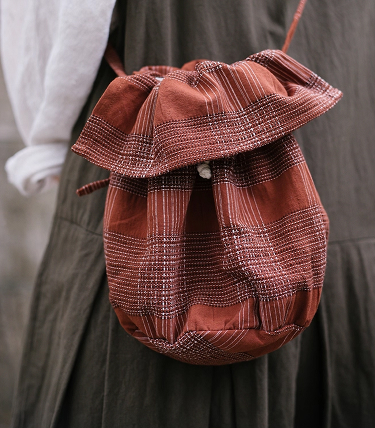 裁缝学苑AQ538棉麻水桶包纸样女装日系森系复古抽绳单肩斜挎小布袋样板图