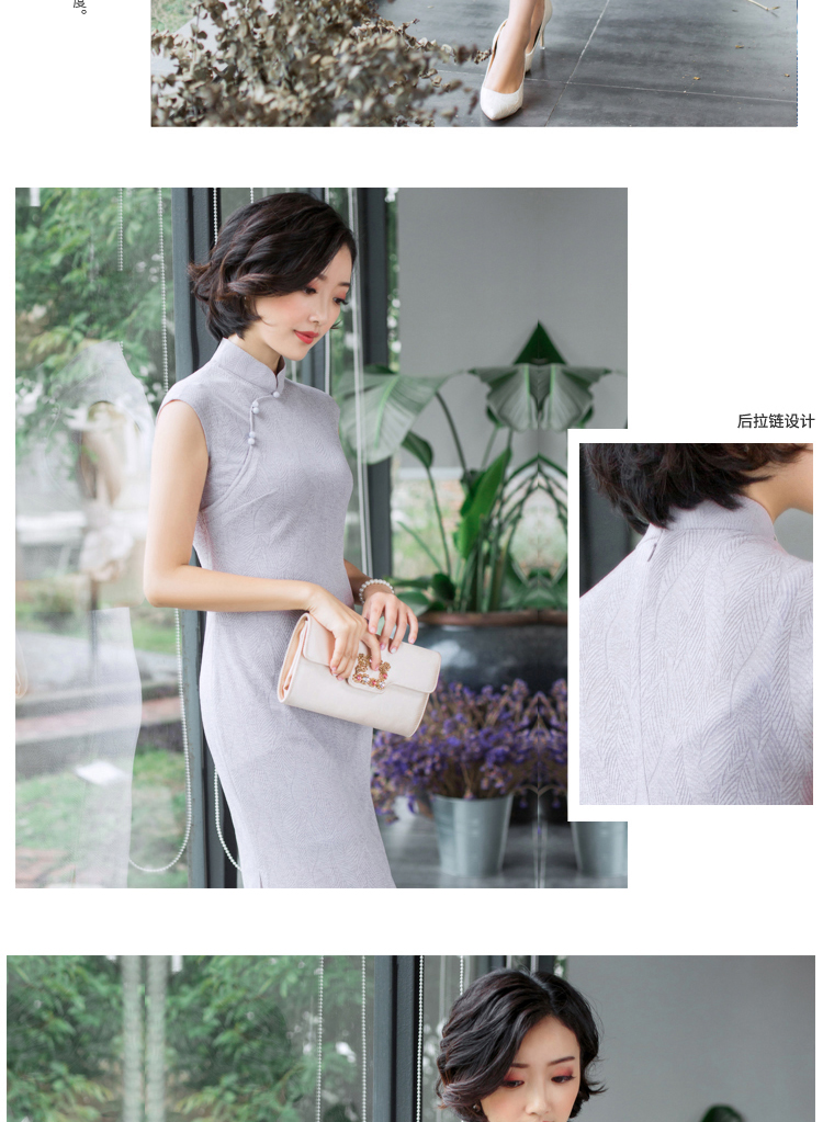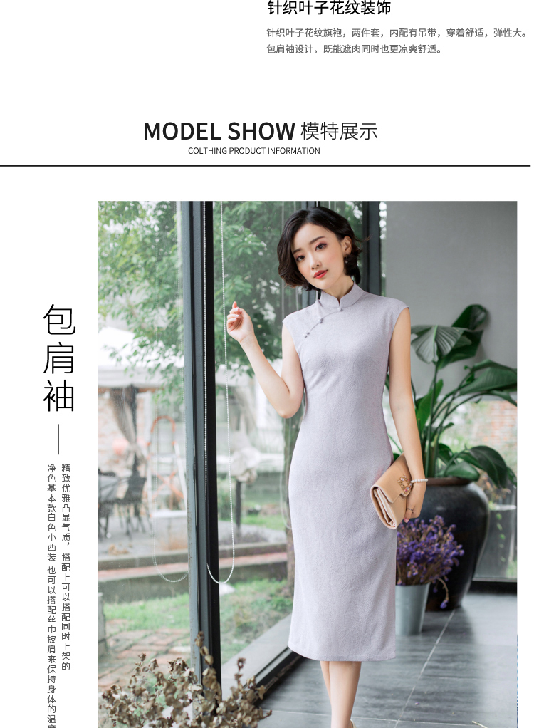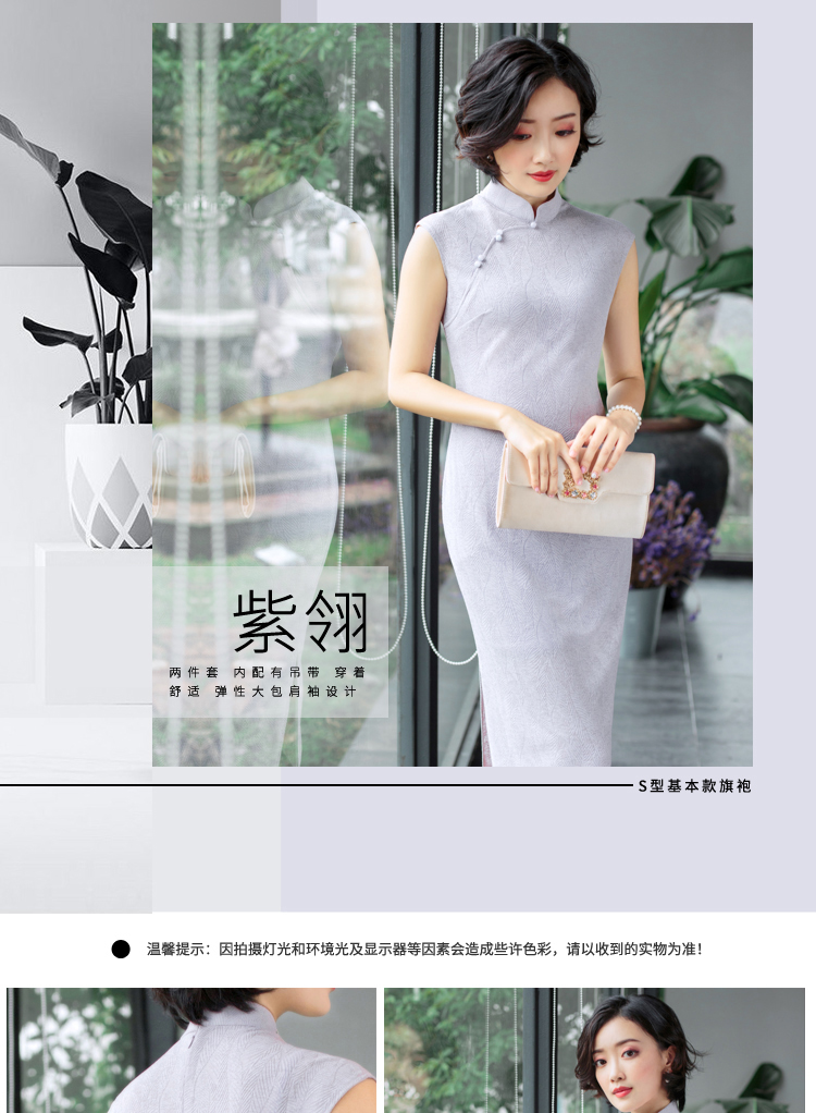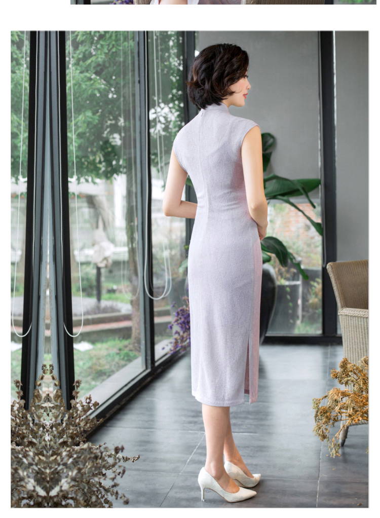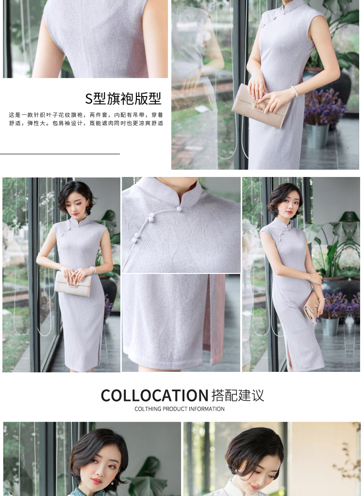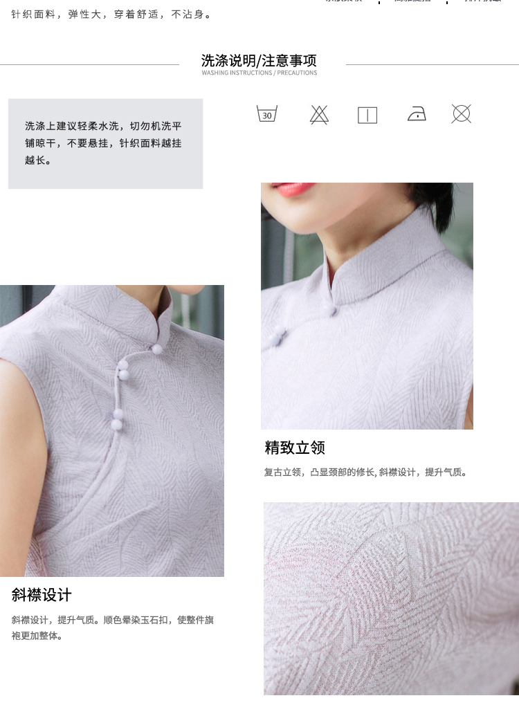 旗袍春秋女 中长款[逸红颜 紫翎]舒适弹力针织改良旗袍少清新淡雅