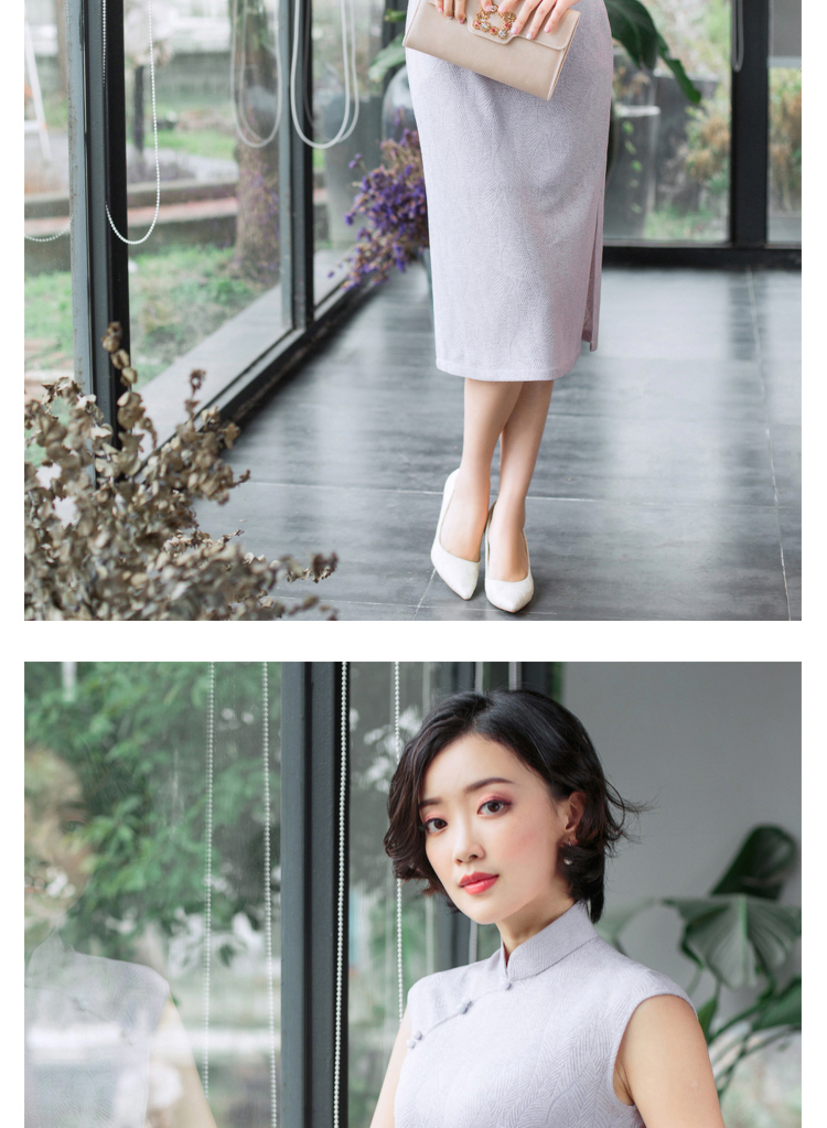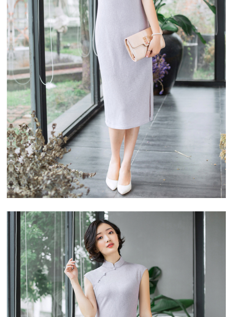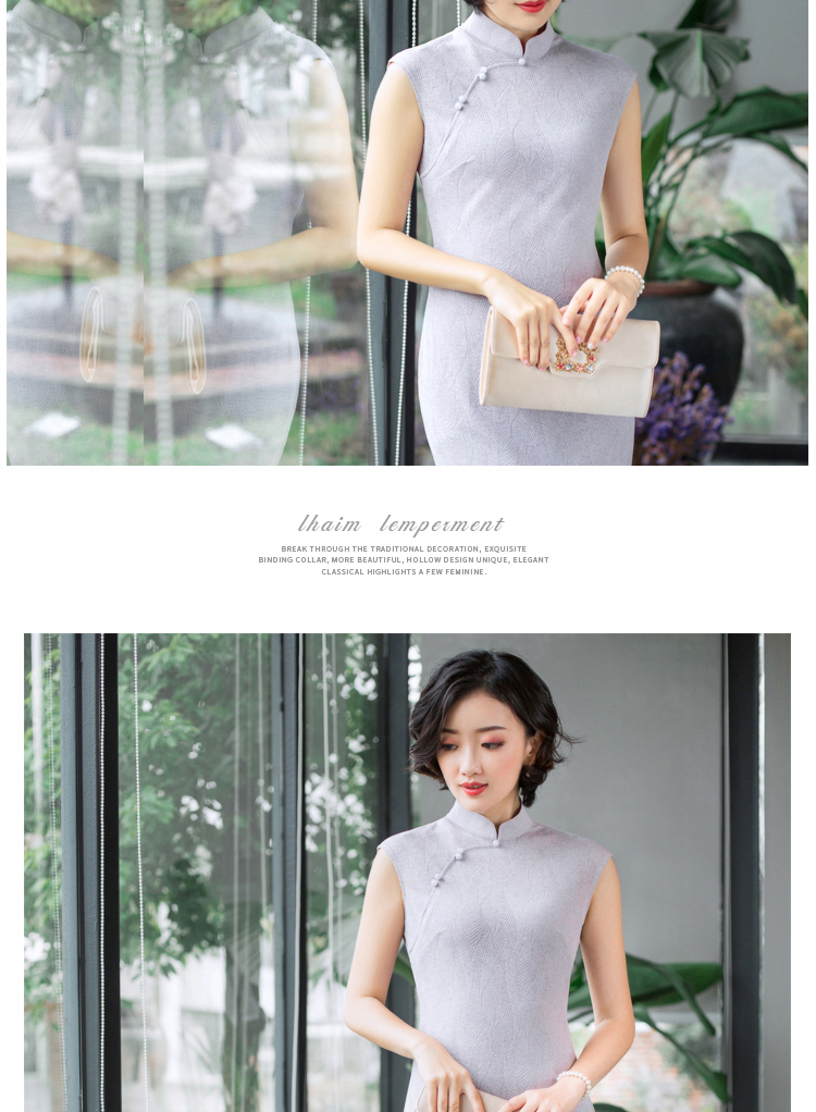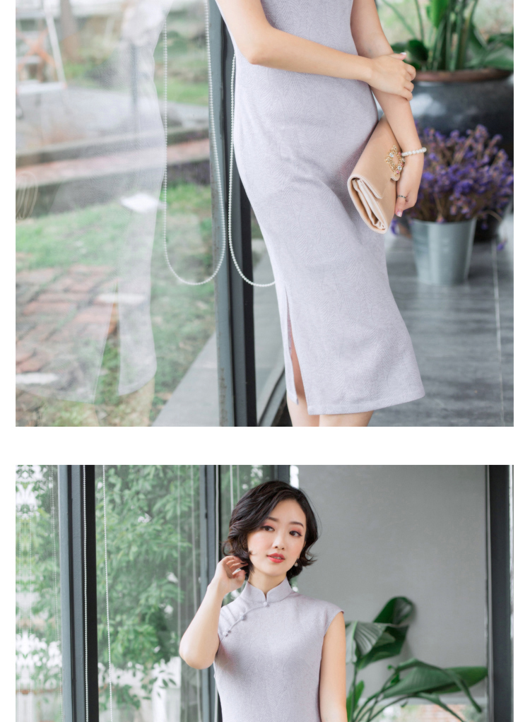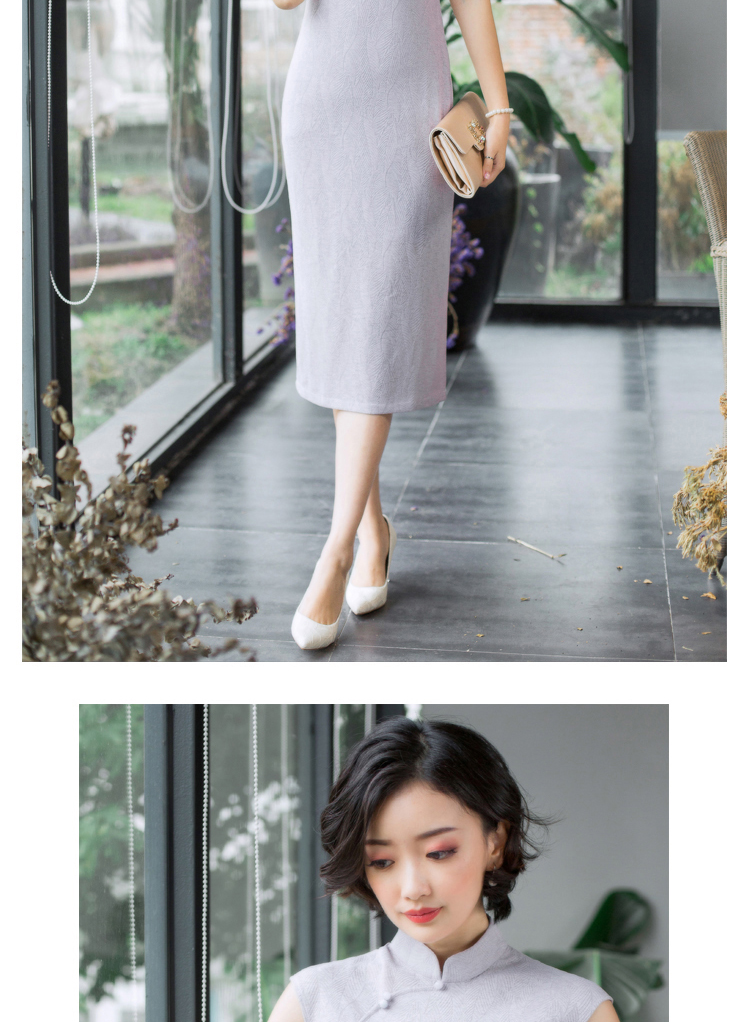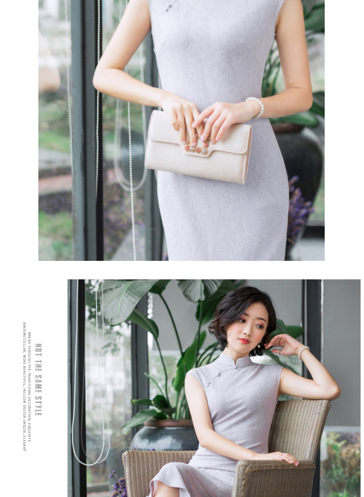 旗袍春秋女 中长款[逸红颜 紫翎]舒适弹力针织改良旗袍少清新淡雅