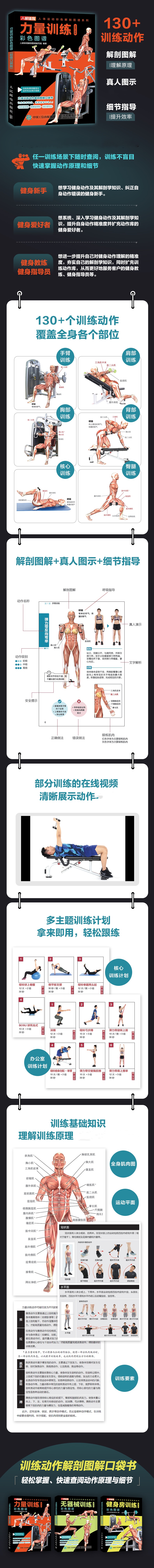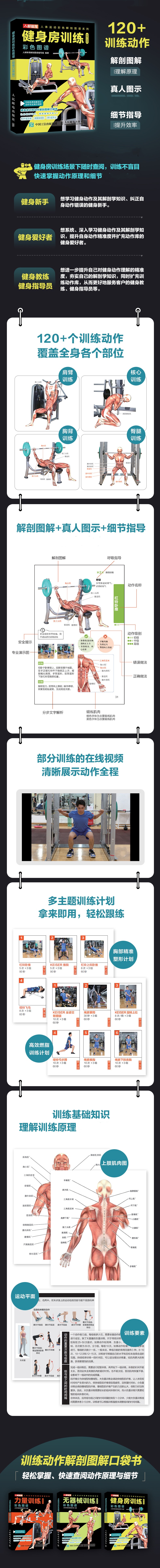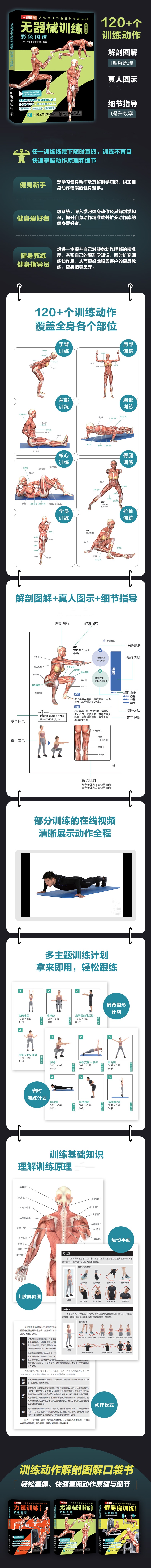 力量训练+健身房训练+无器械训练 彩色图谱 口袋版 多SKU