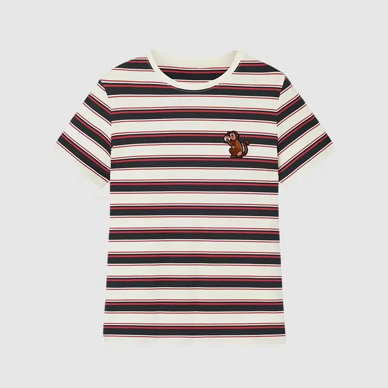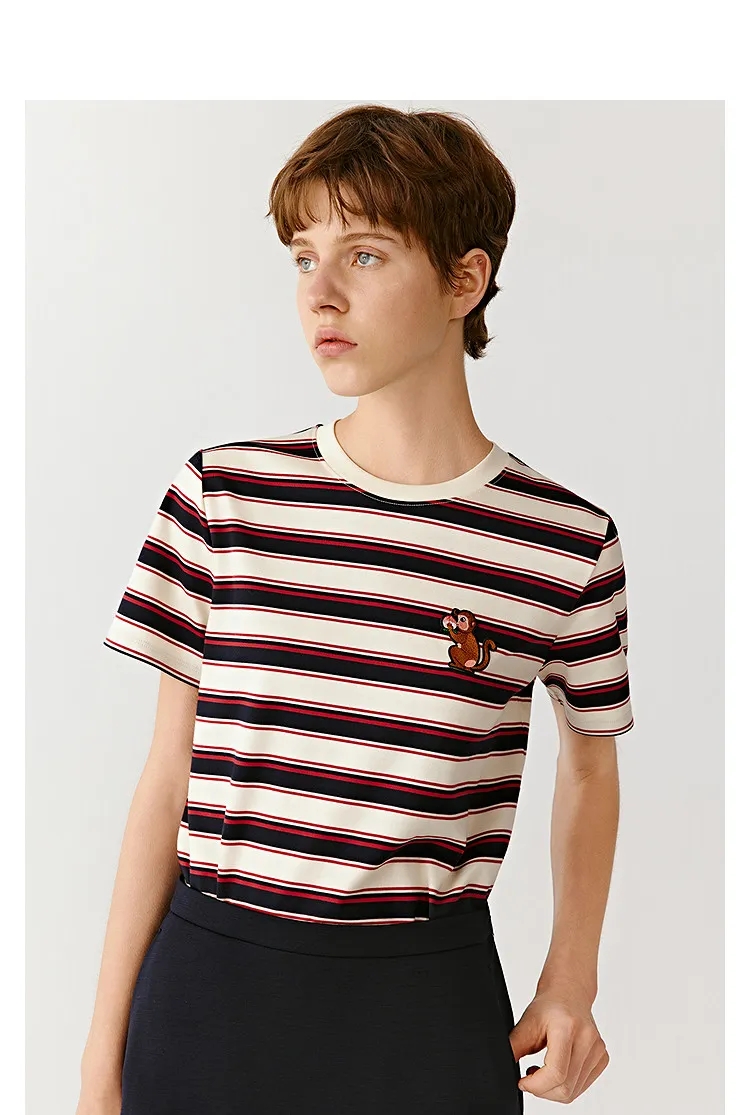 【mmgzs-2001】女士时尚长绒棉条纹百搭短袖T恤!!