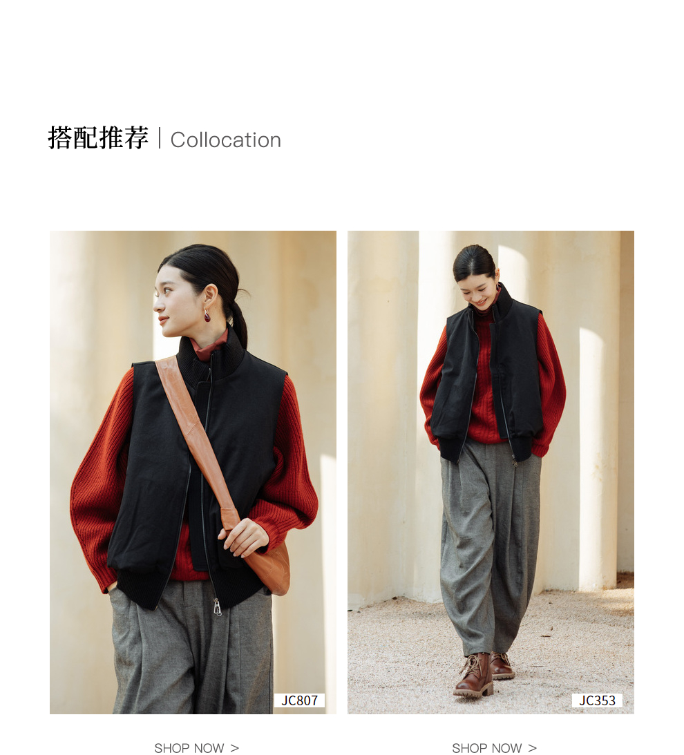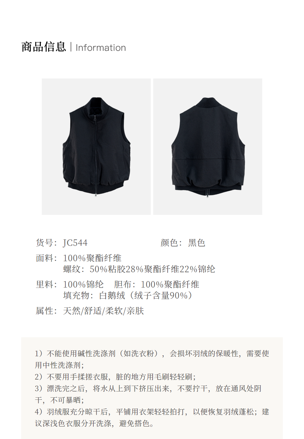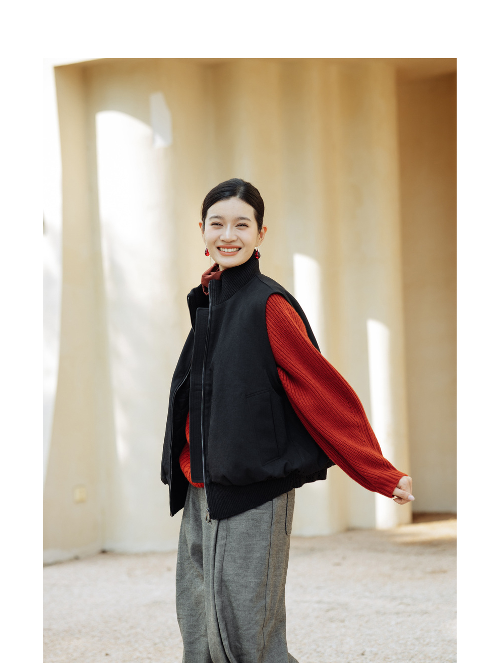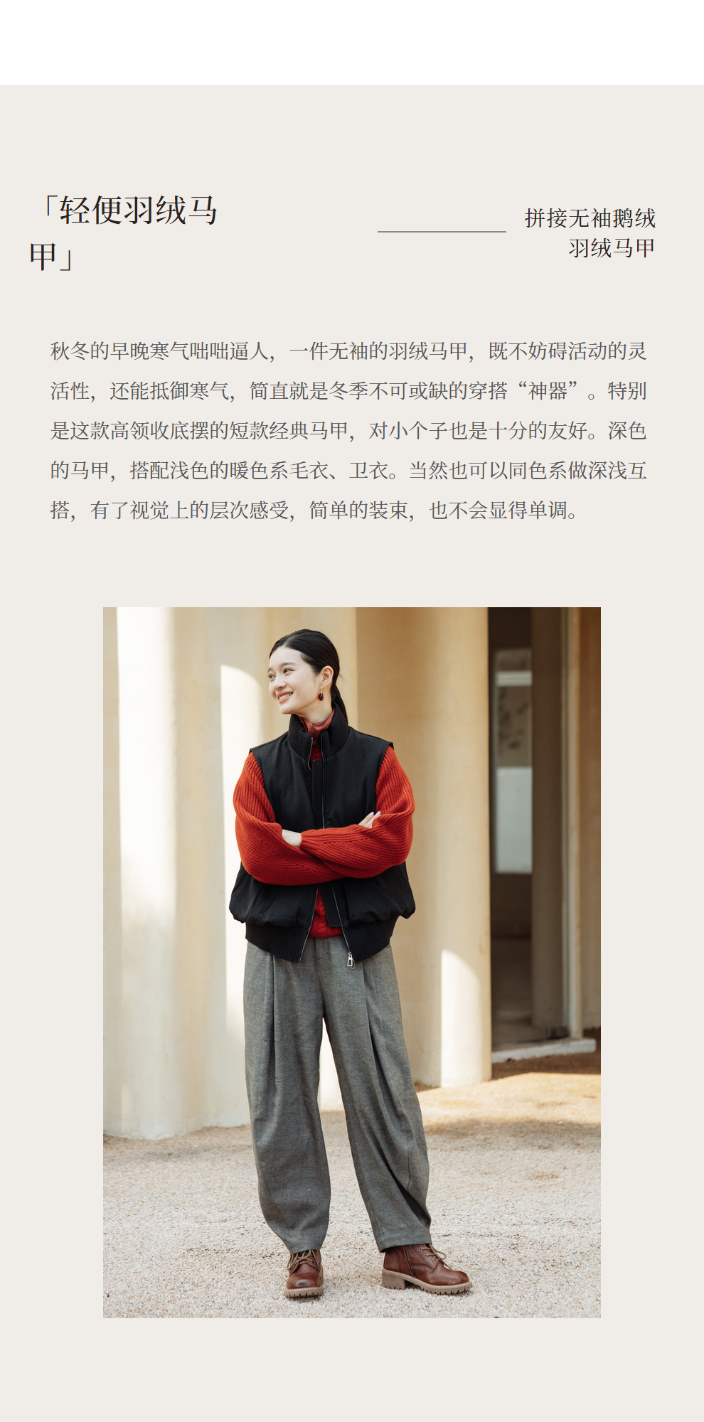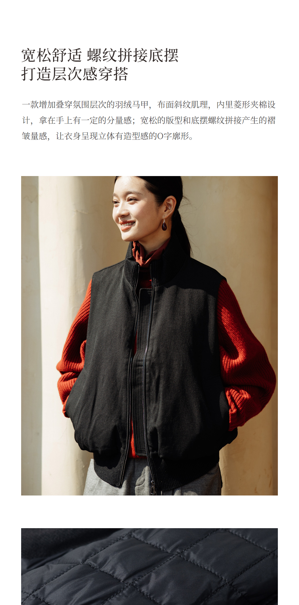 绽放旅行女装544朵/秋冬宽松舒适拼接无袖立领鹅绒轻便羽绒马甲