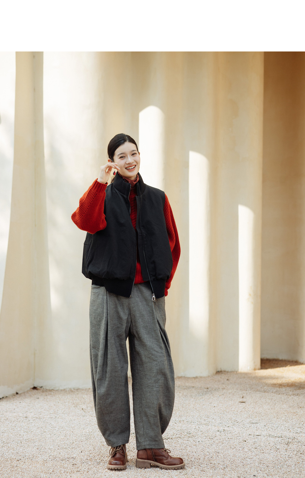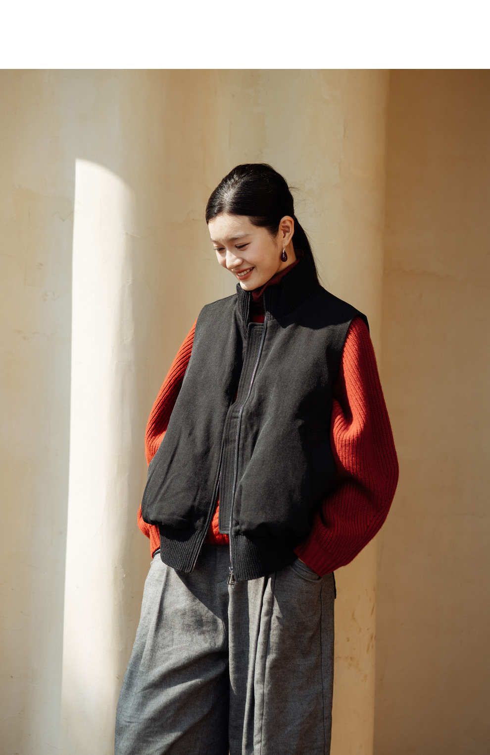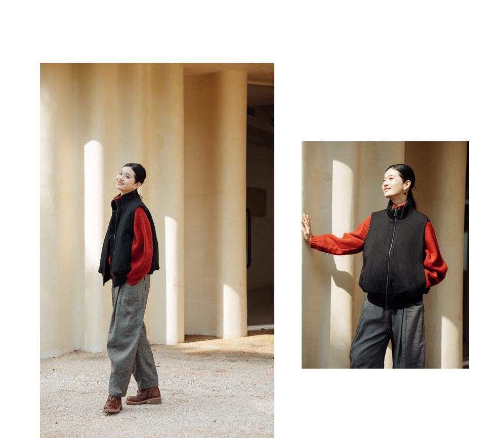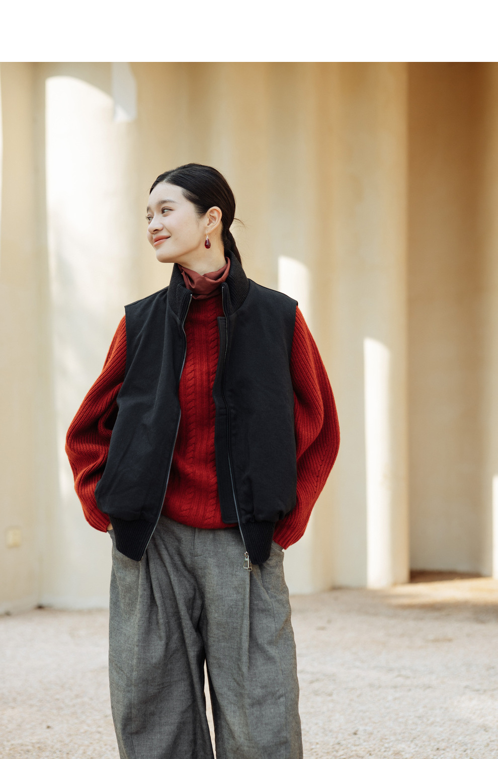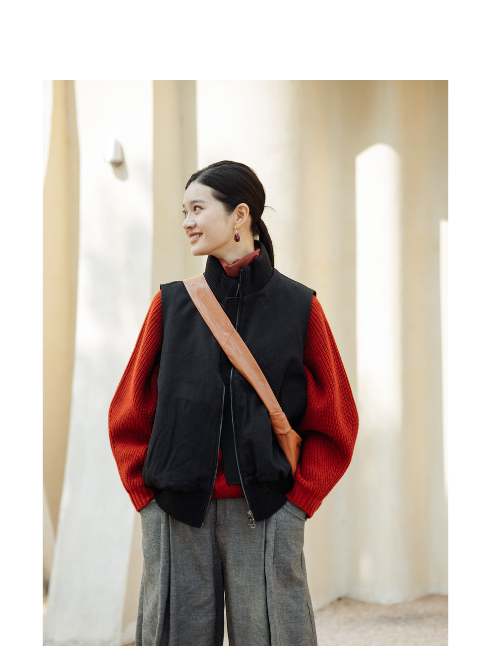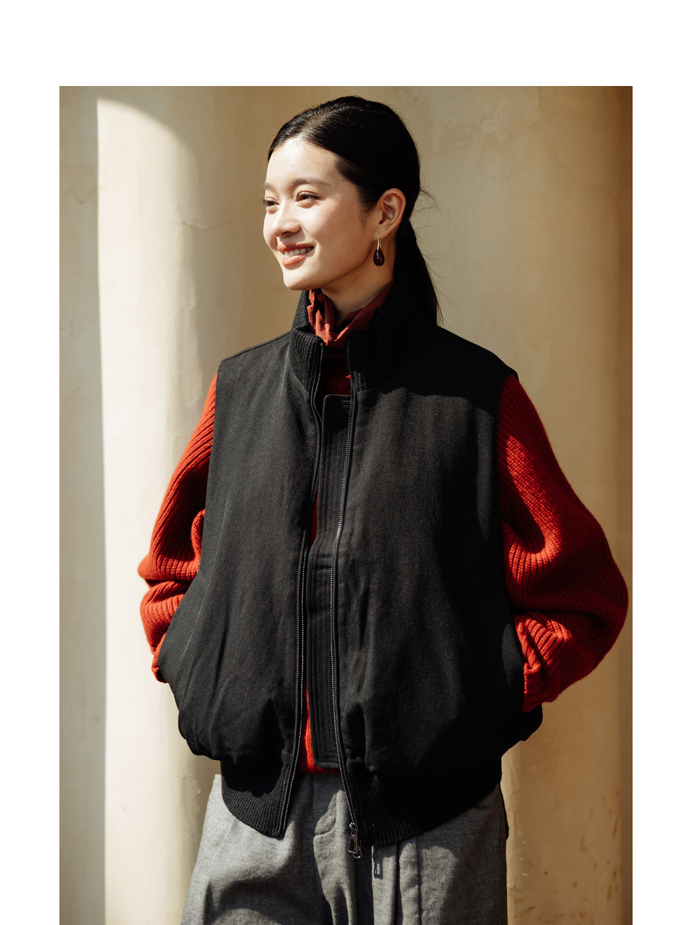 绽放旅行女装544朵/秋冬宽松舒适拼接无袖立领鹅绒轻便羽绒马甲