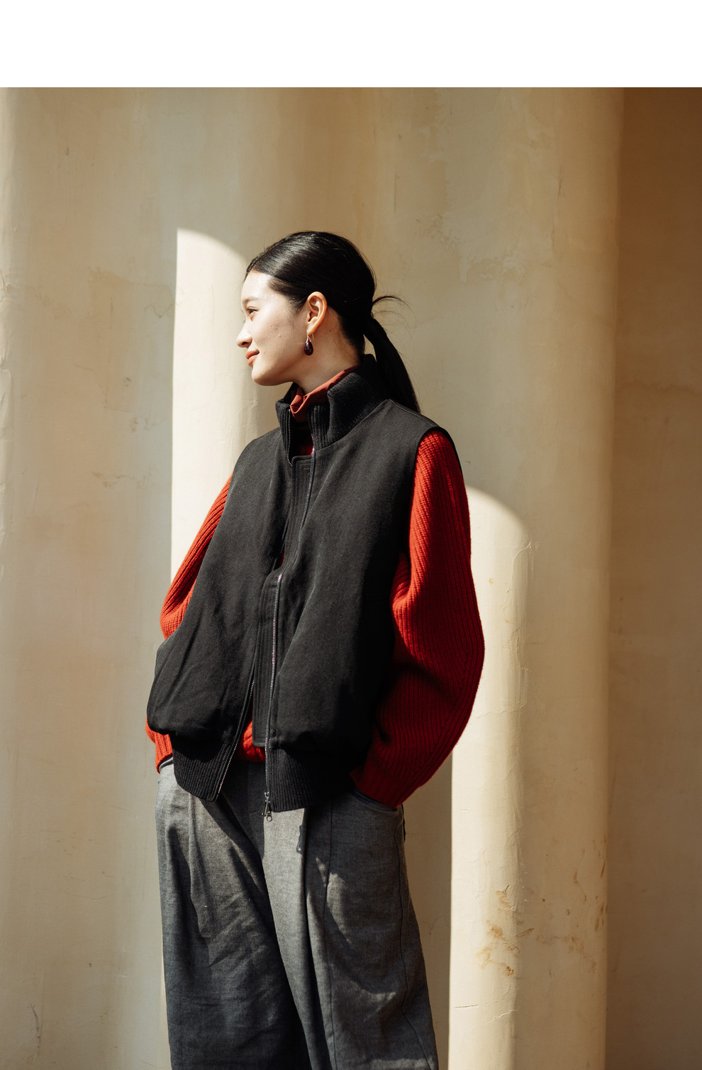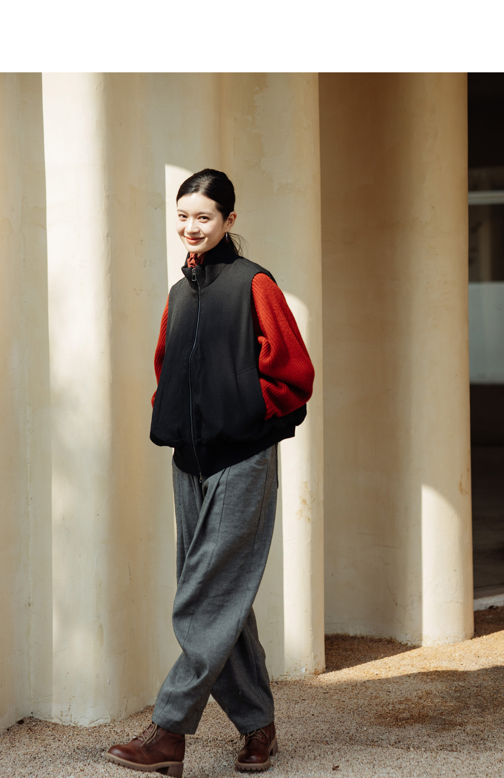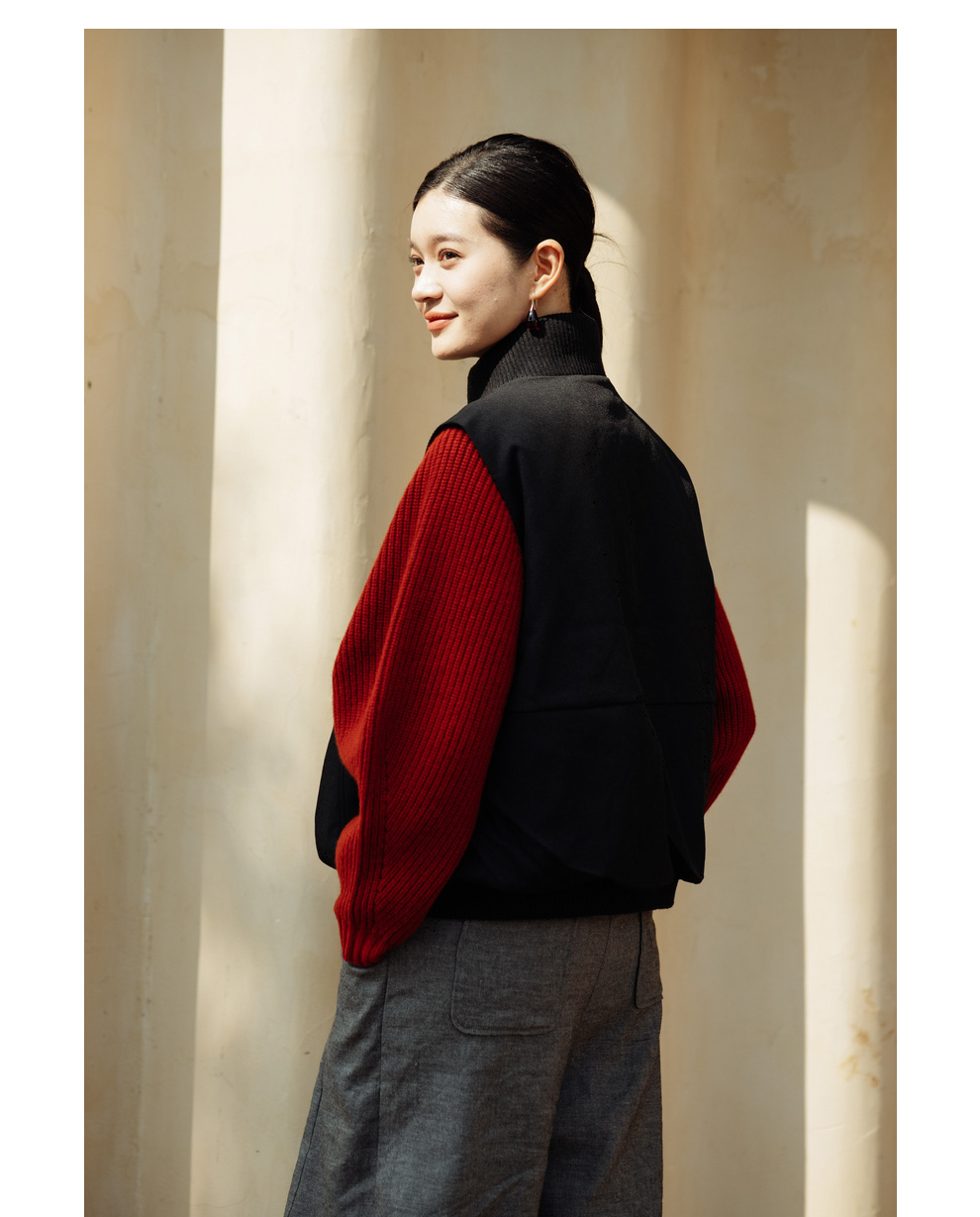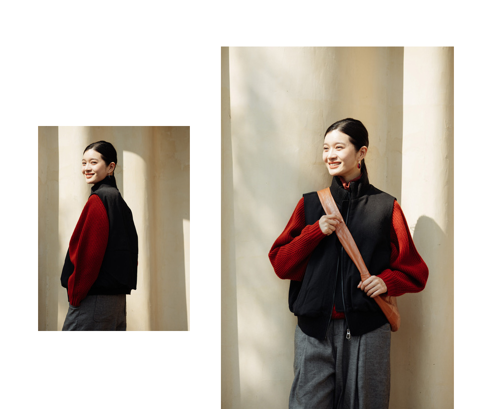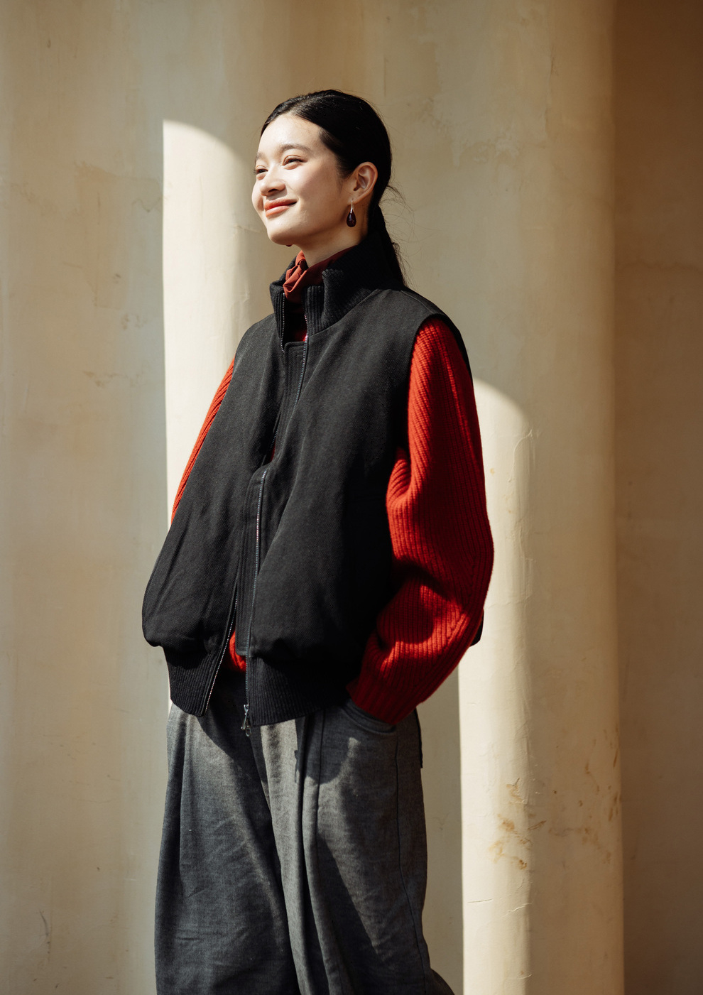 绽放旅行女装544朵/秋冬宽松舒适拼接无袖立领鹅绒轻便羽绒马甲