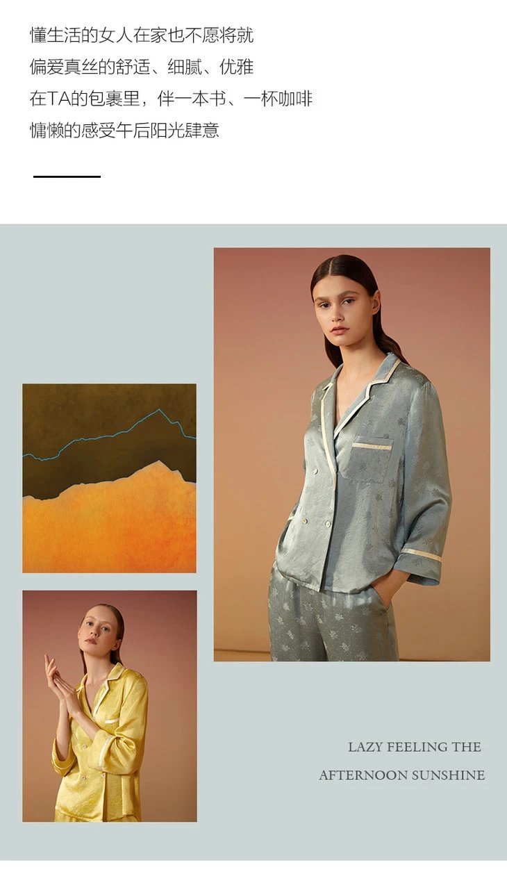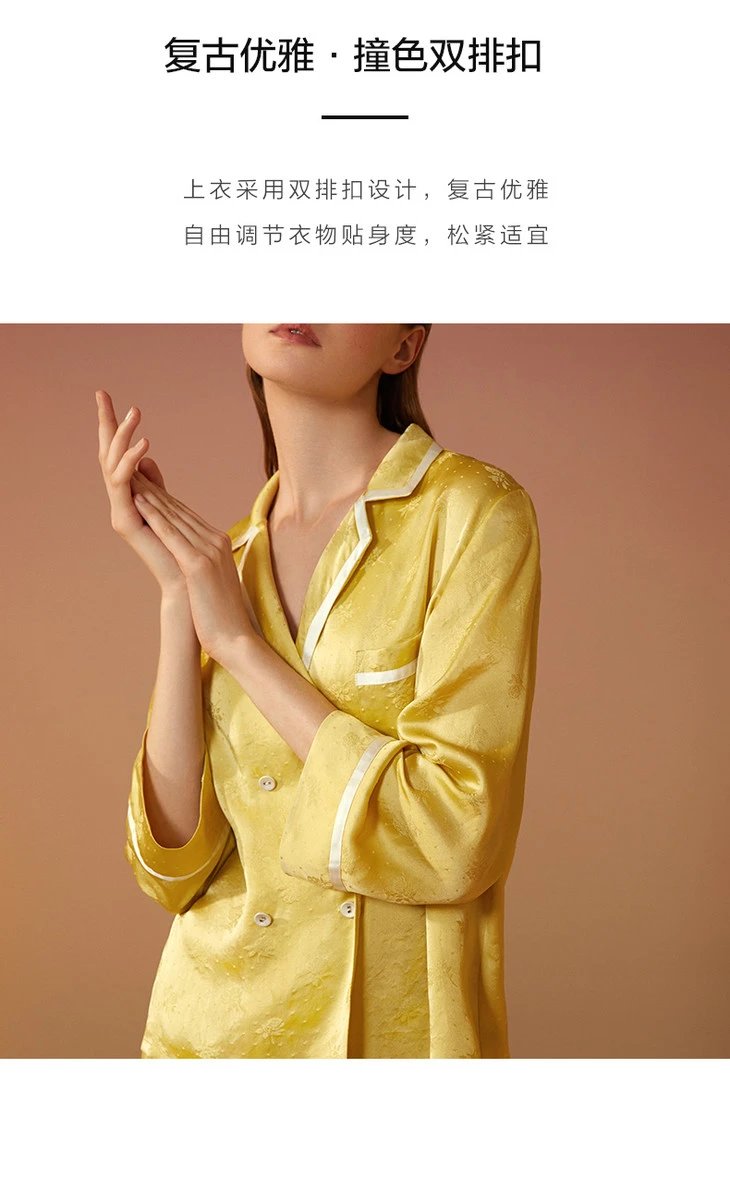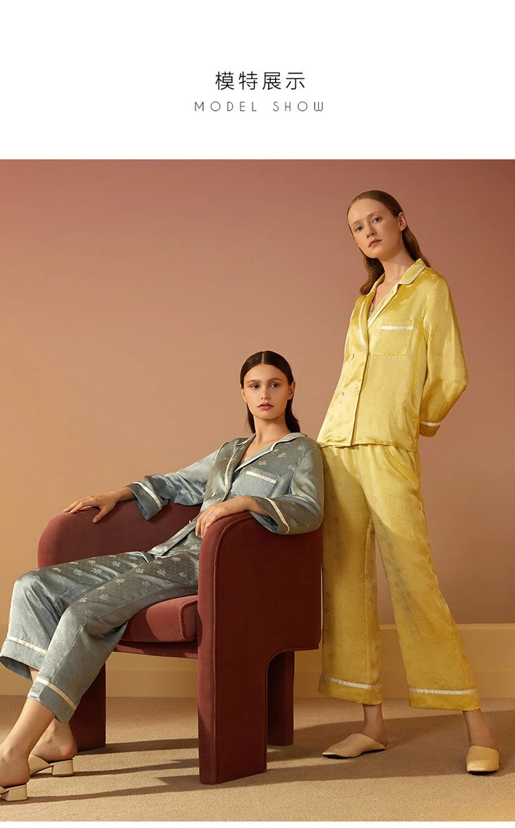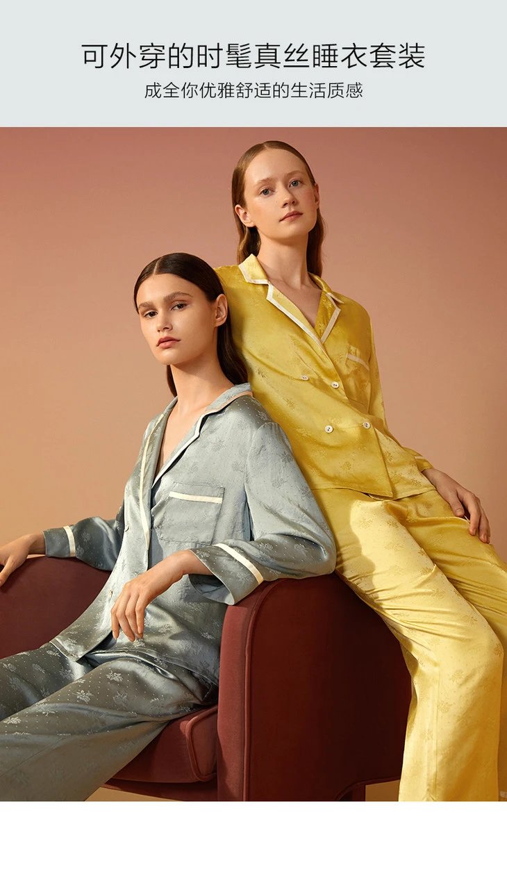 金三塔新品 真丝睡衣女100%桑蚕丝长袖长裤可外穿衣裤套 YSFAC208