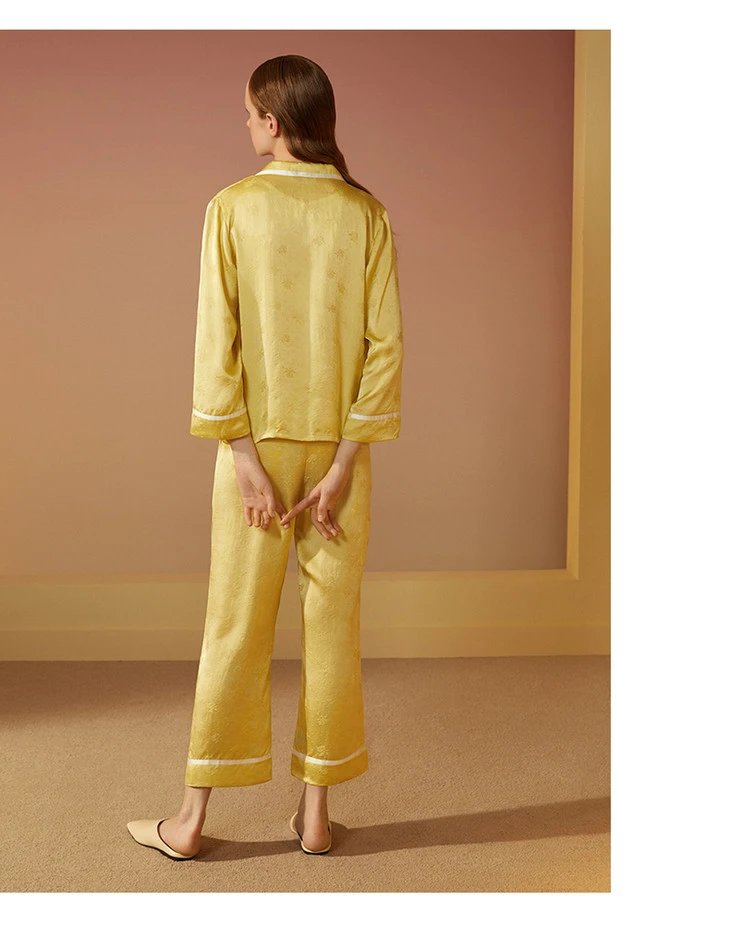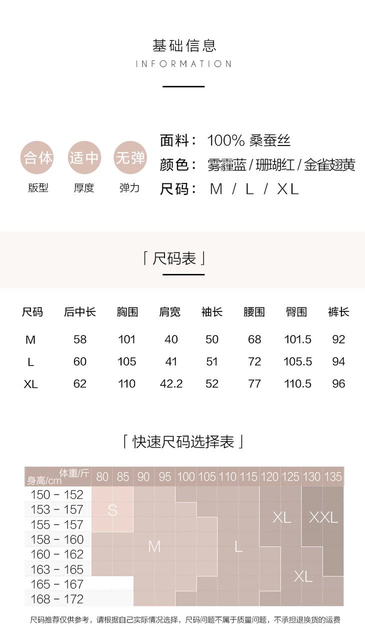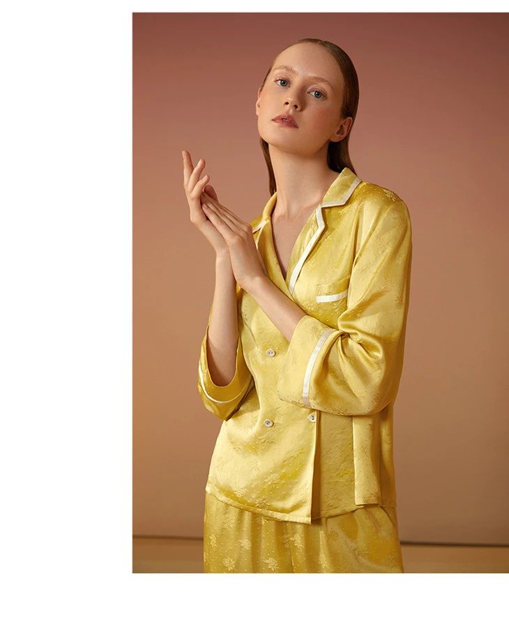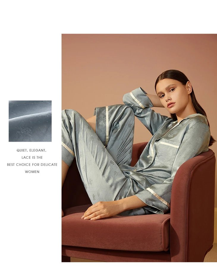 金三塔新品 真丝睡衣女100%桑蚕丝长袖长裤可外穿衣裤套 YSFAC208