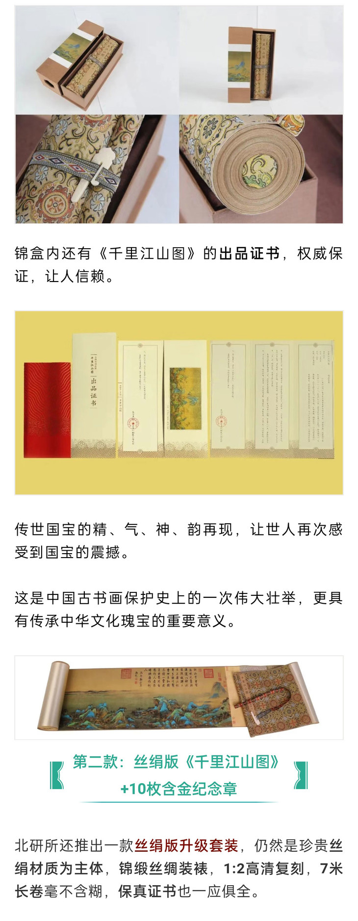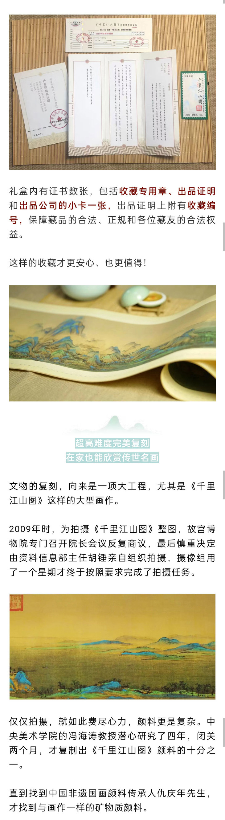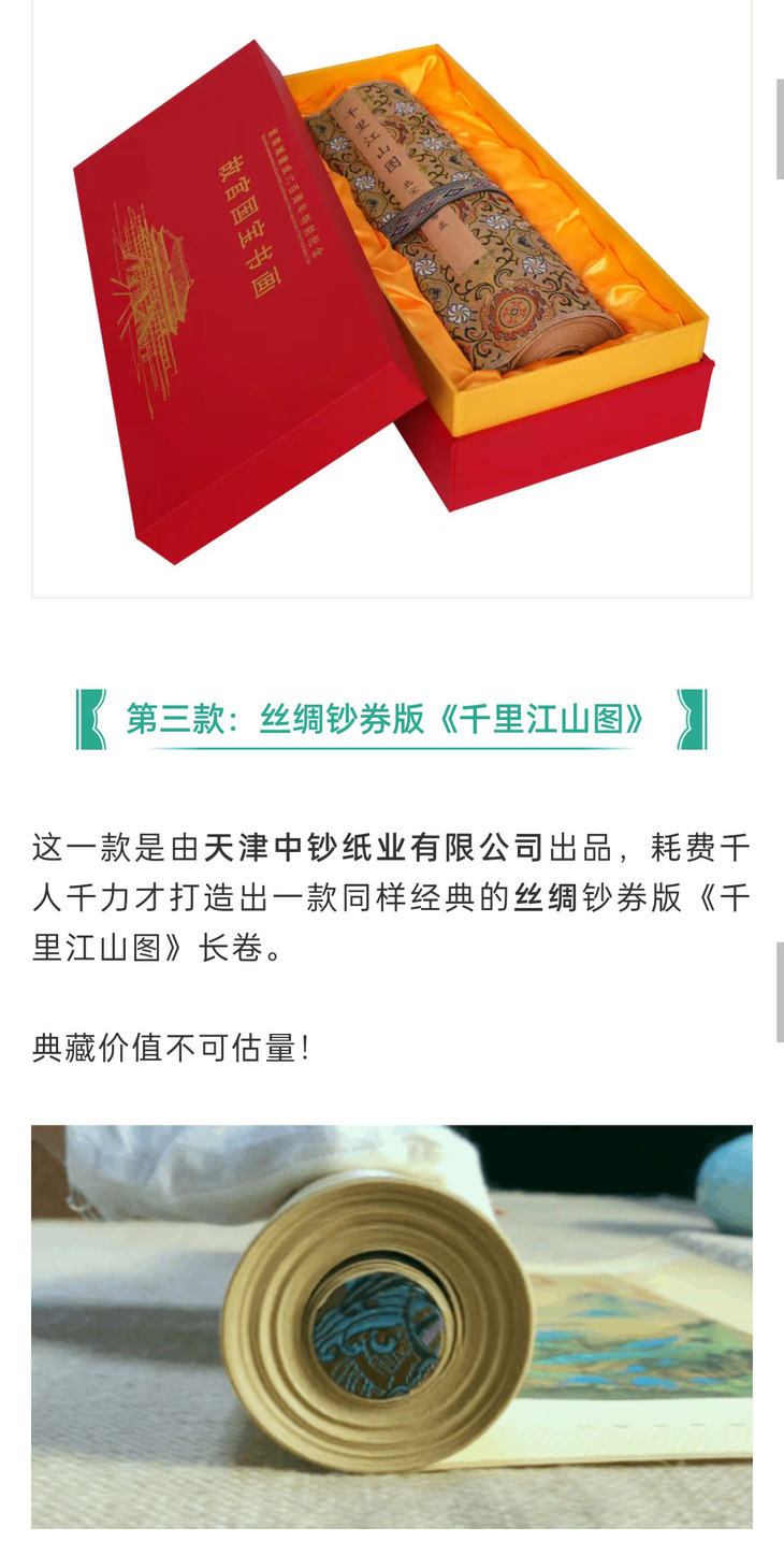 这幅丝绸版的《千里江山图》,故宫官方的定价是3960元,小C为大家争取到故宫超级优惠,关注小C收藏或集邮世界公众号的藏友,仅需698元!就可以把国宝带回家!