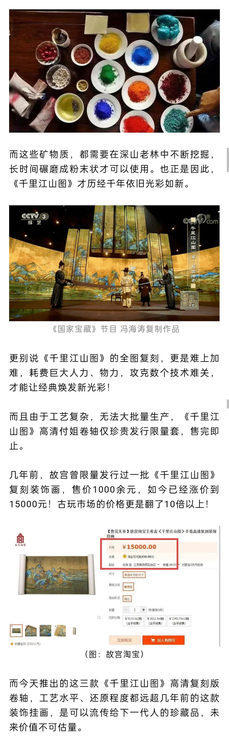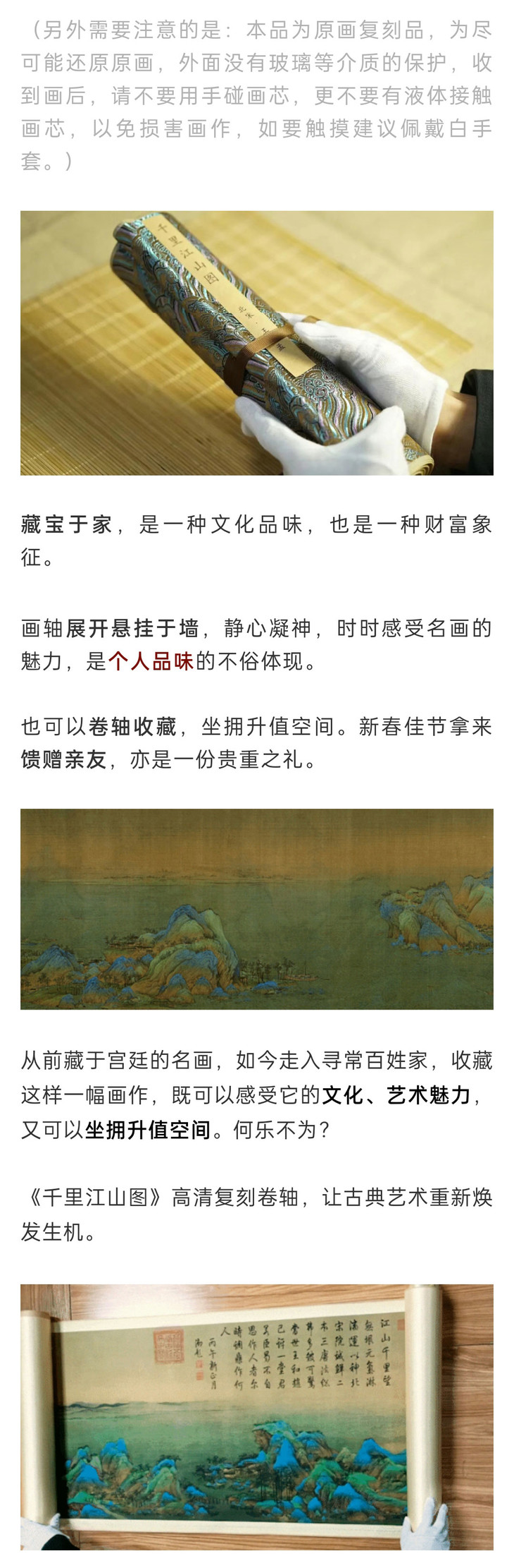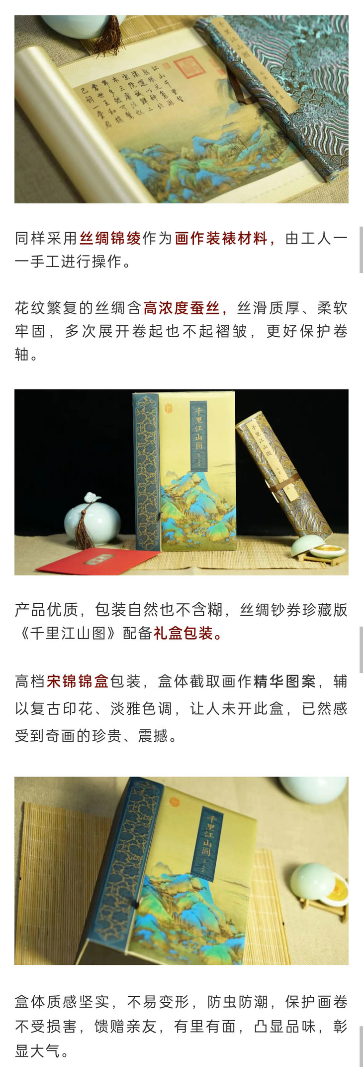这幅丝绸版的《千里江山图》,故宫官方的定价是3960元,小C为大家争取到故宫超级优惠,关注小C收藏或集邮世界公众号的藏友,仅需698元!就可以把国宝带回家!