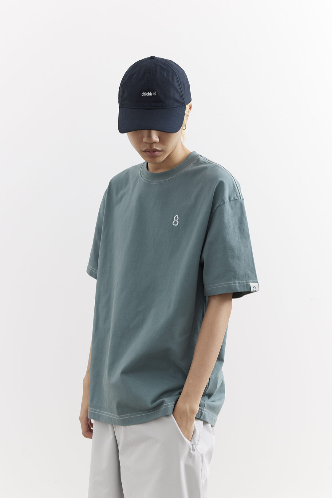 吃茶去chichaqu25纯棉宽松圆领短袖重磅T恤街头复古水洗成衣染色