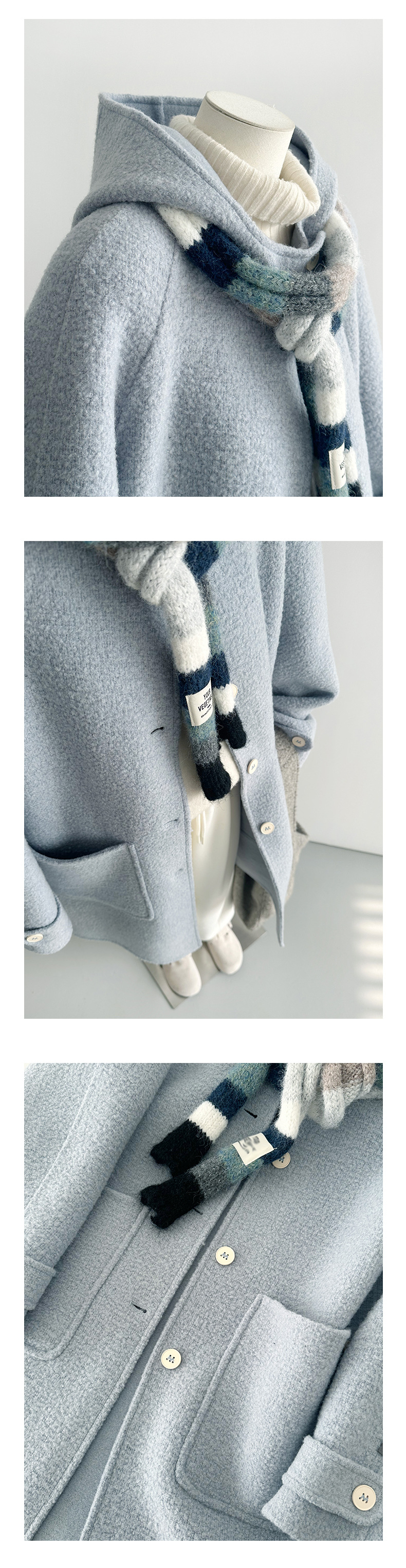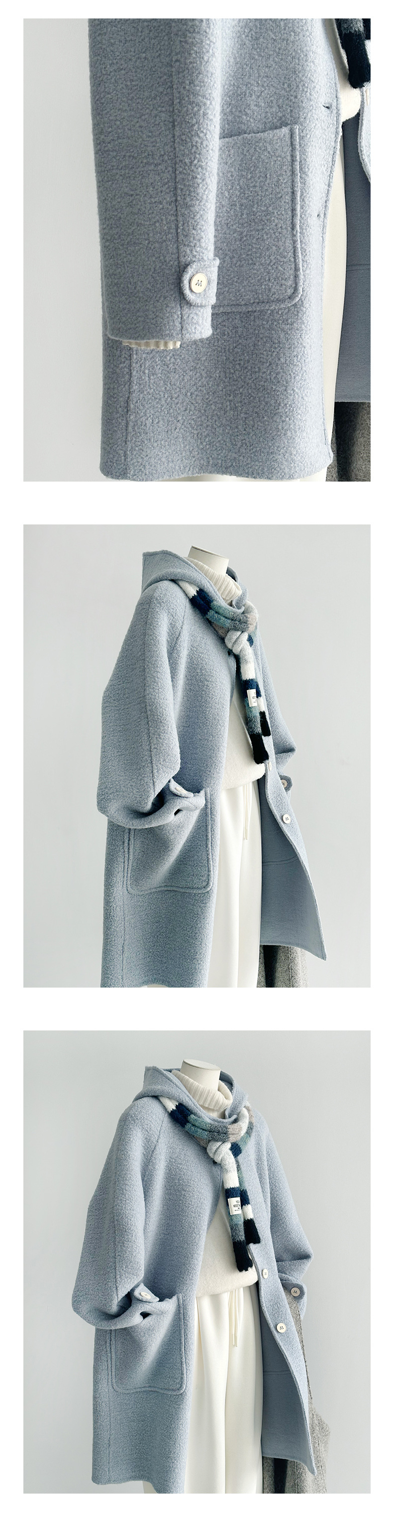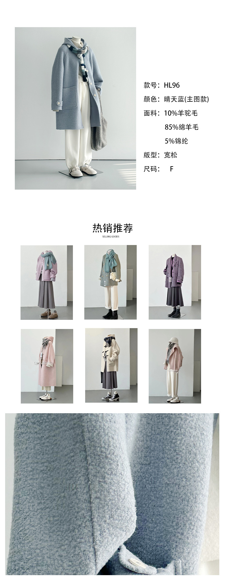 【抓住云朵】24新款可盐可甜蓝色连帽时尚百搭洋气学院风大衣