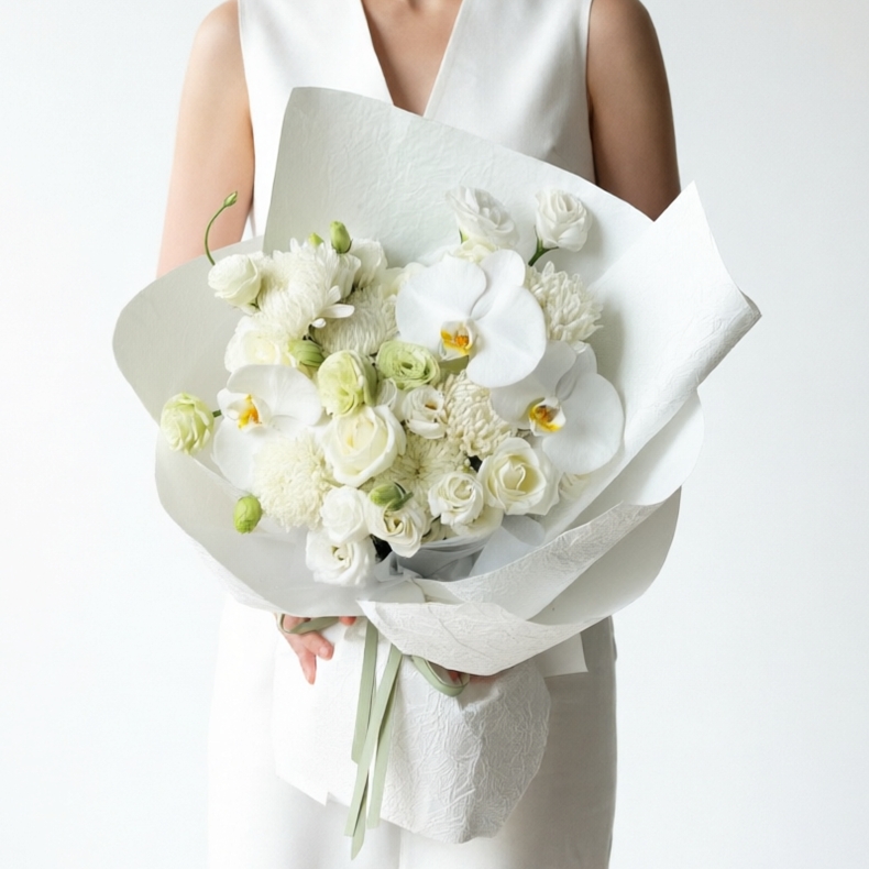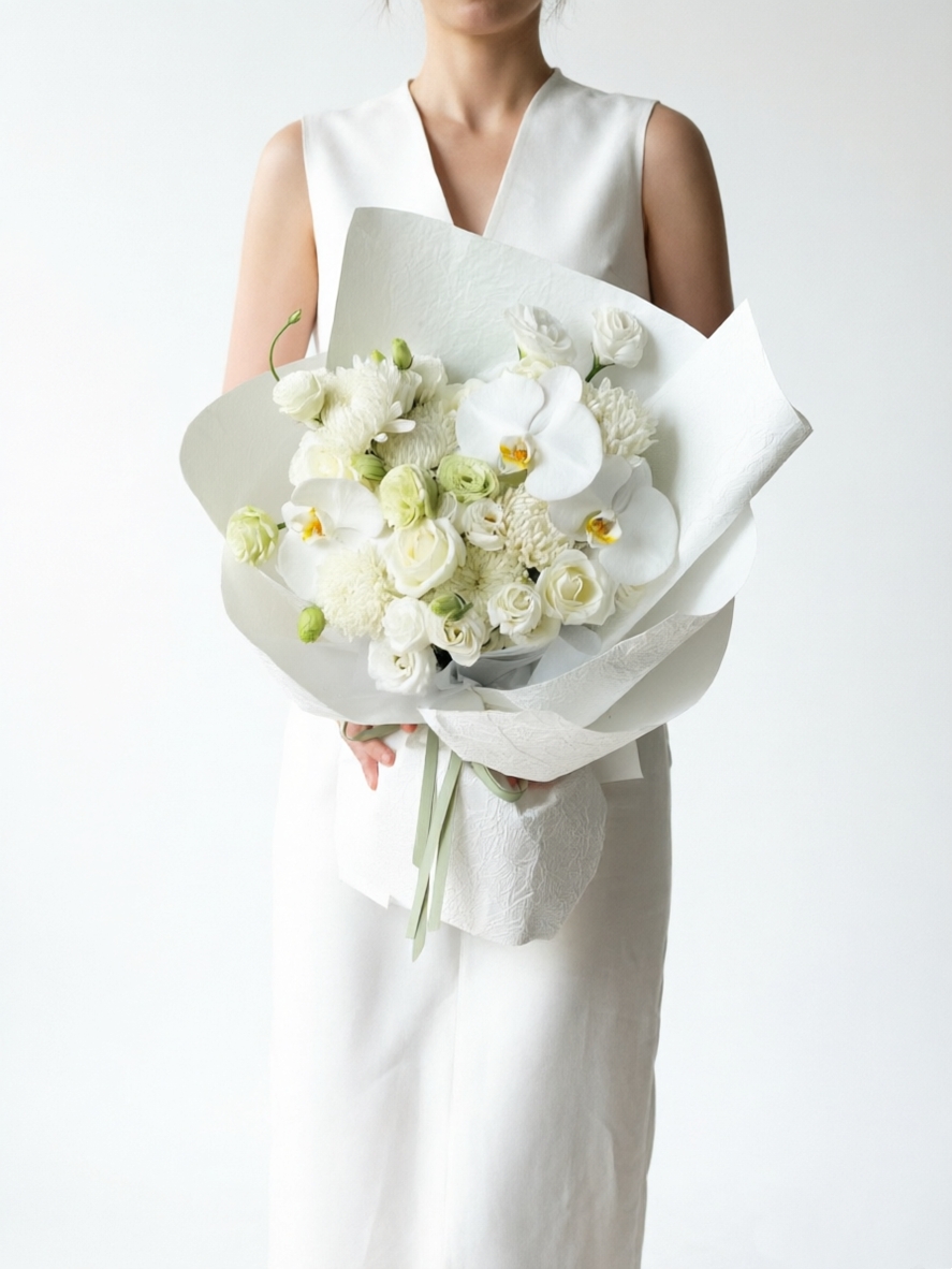 这一袭纯白,是月华的凝驻,是心绪的净言。愿这份洁白无暇的敬意,能穿越时空,抵达安宁的彼岸,诉说永恒的怀慕。