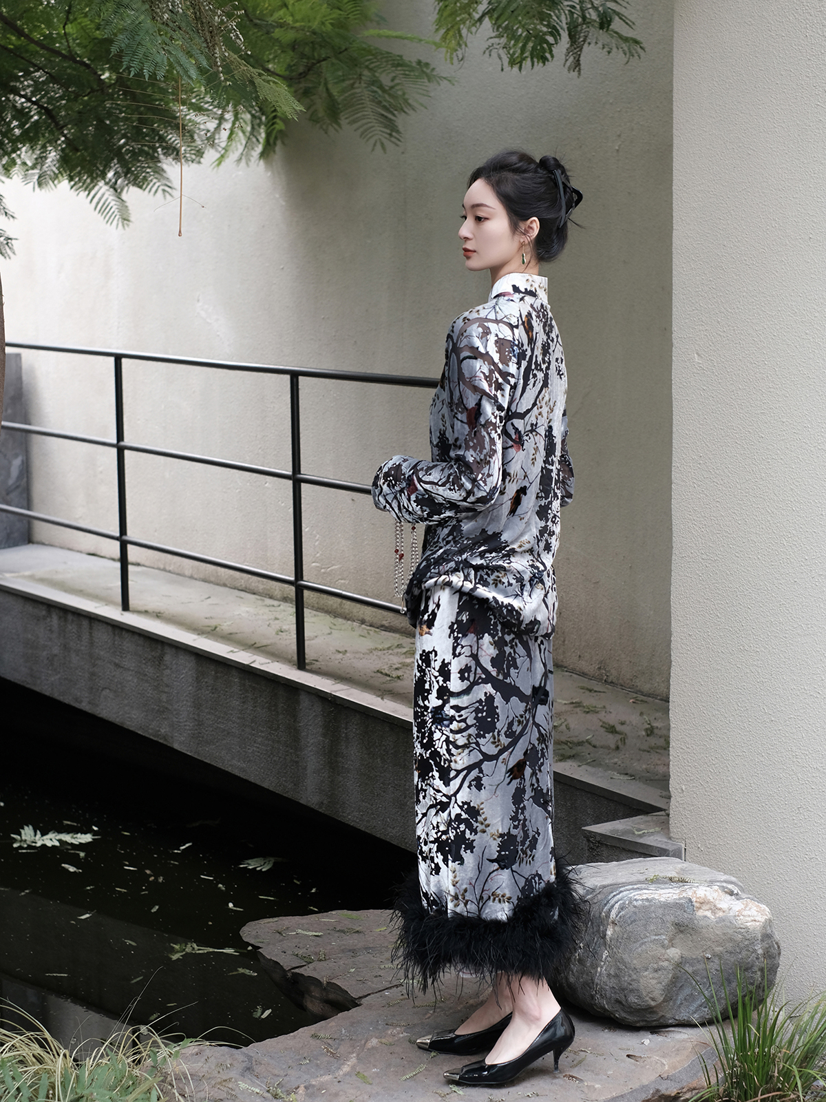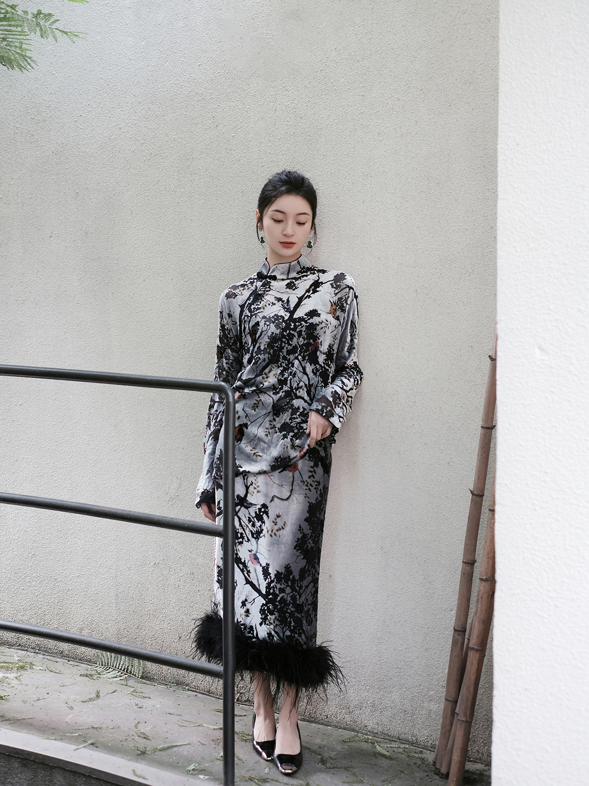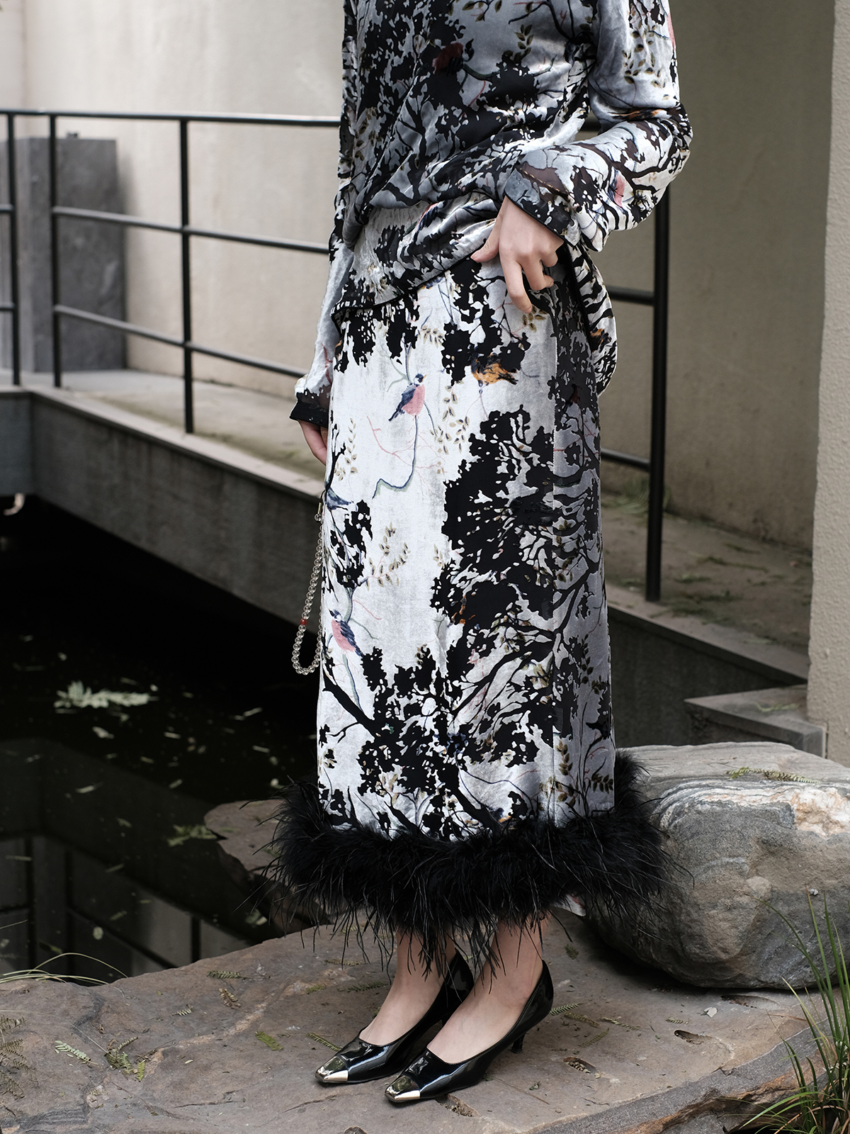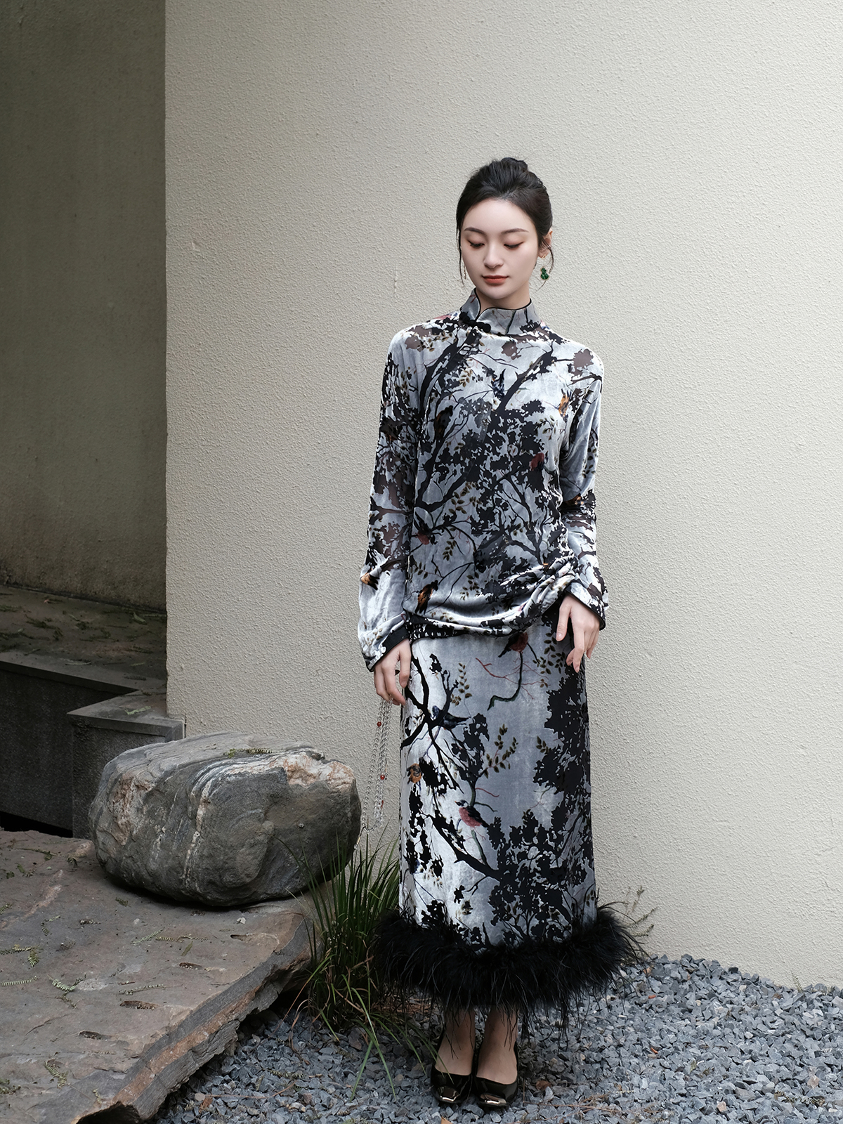 盛唐牡丹 | 丝绒小鸟配鸵鸟毛半裙(鸵鸟毛可拆卸)