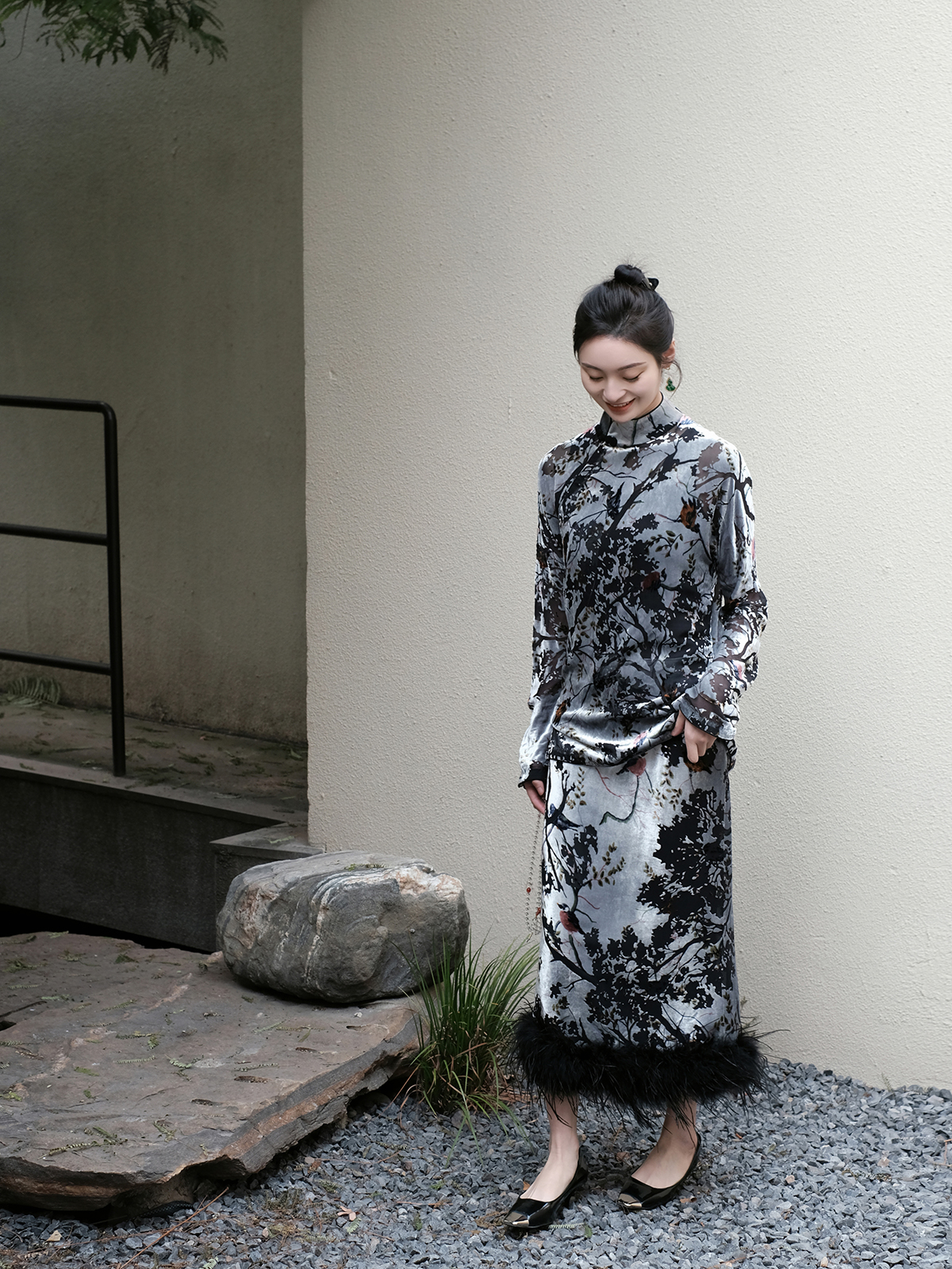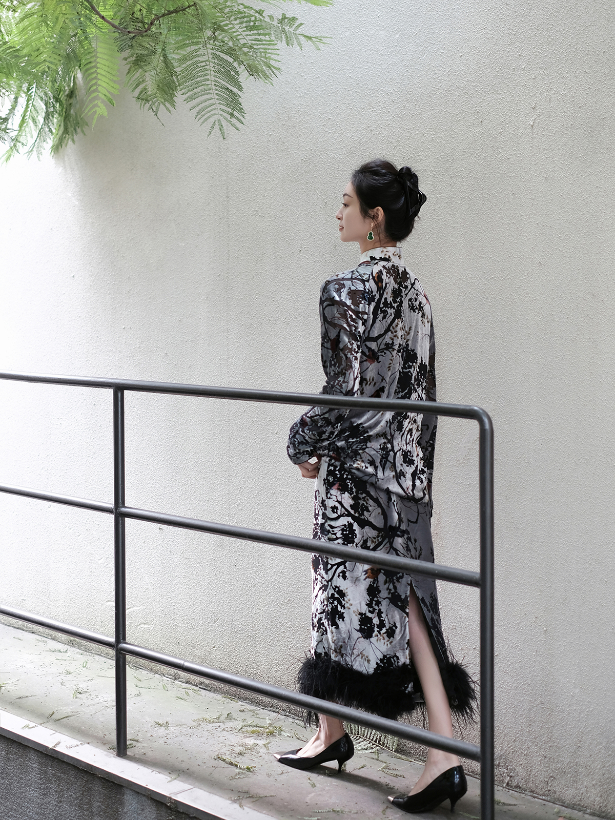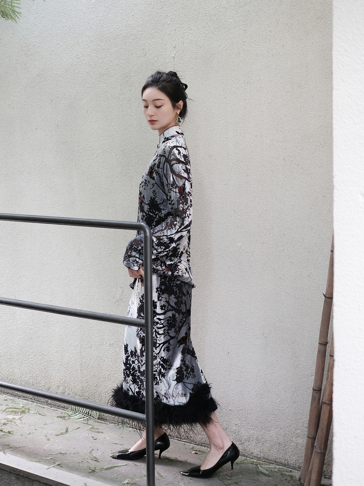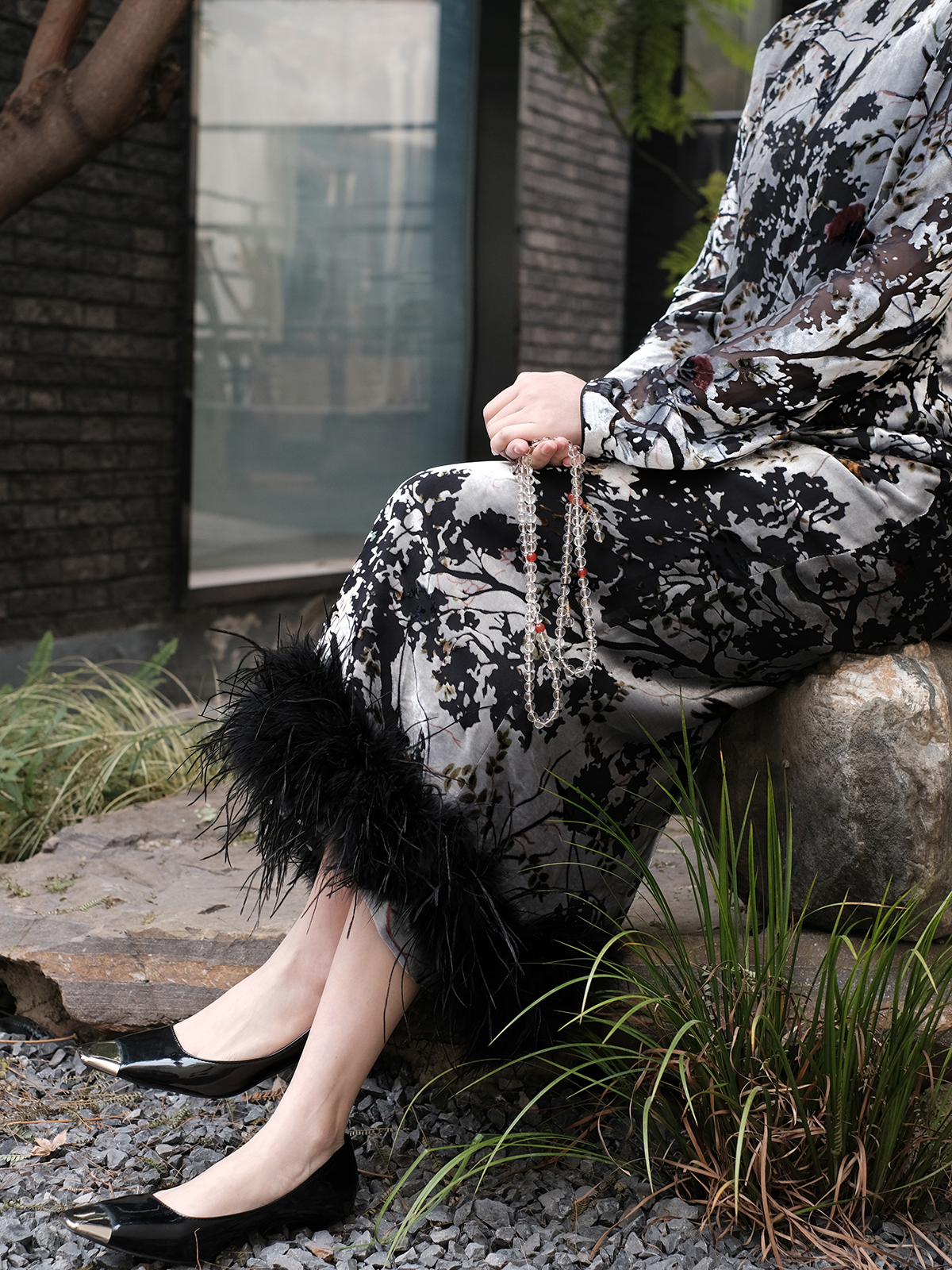 盛唐牡丹 | 丝绒小鸟配鸵鸟毛半裙(鸵鸟毛可拆卸)