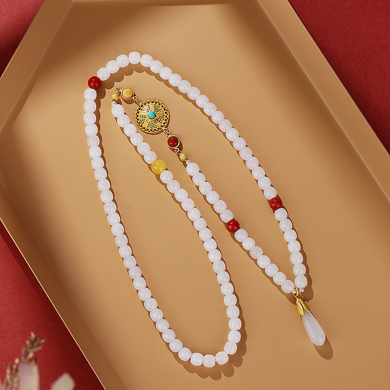材质:羊脂白玉 南红 银镀金 蜜蜡 绿松石