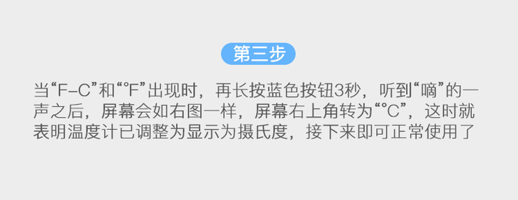 特别需要注意的是,当你调节完温度之后,机器会进入关机状态,同时,你只需要调整一次温度显示就好了,之后可以正常使用。需要特别注意的是,下述操作步骤,机器的初始状态是关机状态,开机状态下是无法按照下述操作步骤进行操作的。这个的意思是室内温度低于15.5度,请放置于温暖的地方一段时间后即可使用。