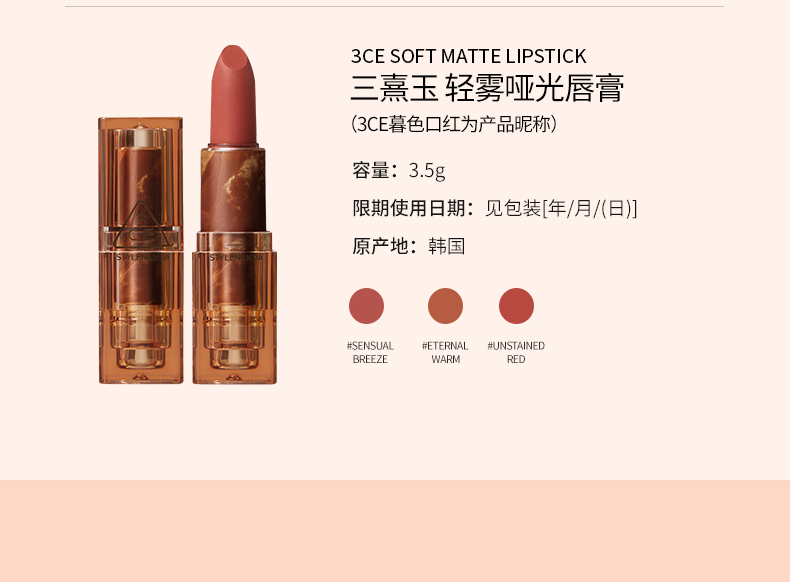【保税仓】3CE暮色口红#ETERNAL WARM暖茶棕3.5g