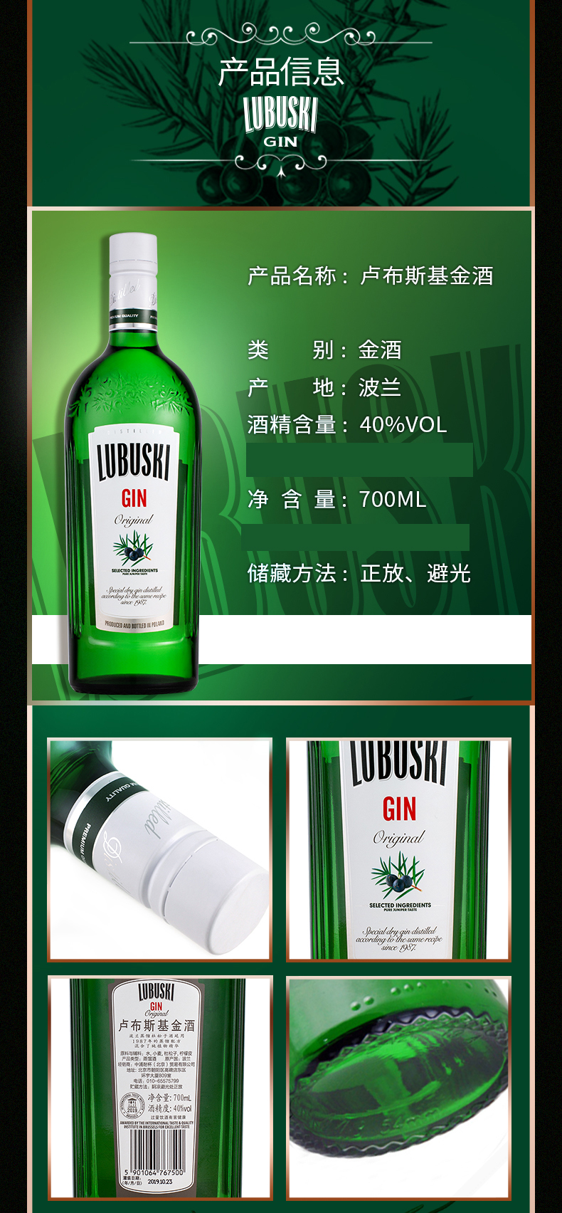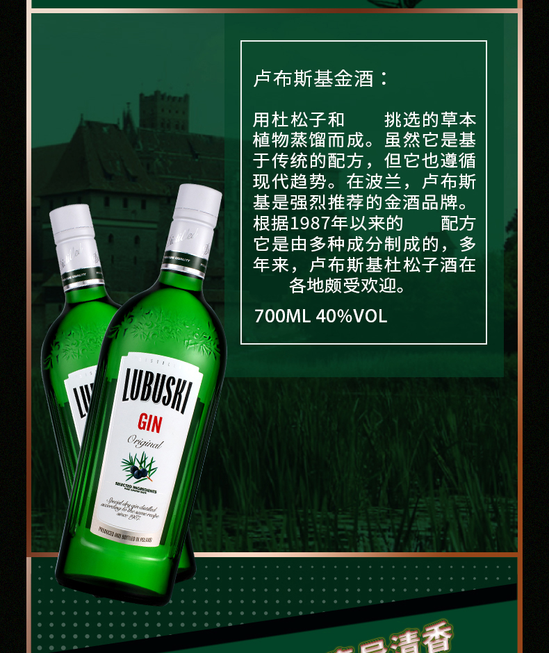 波兰卢布斯基金酒 琴酒杜松子酒鸡尾酒