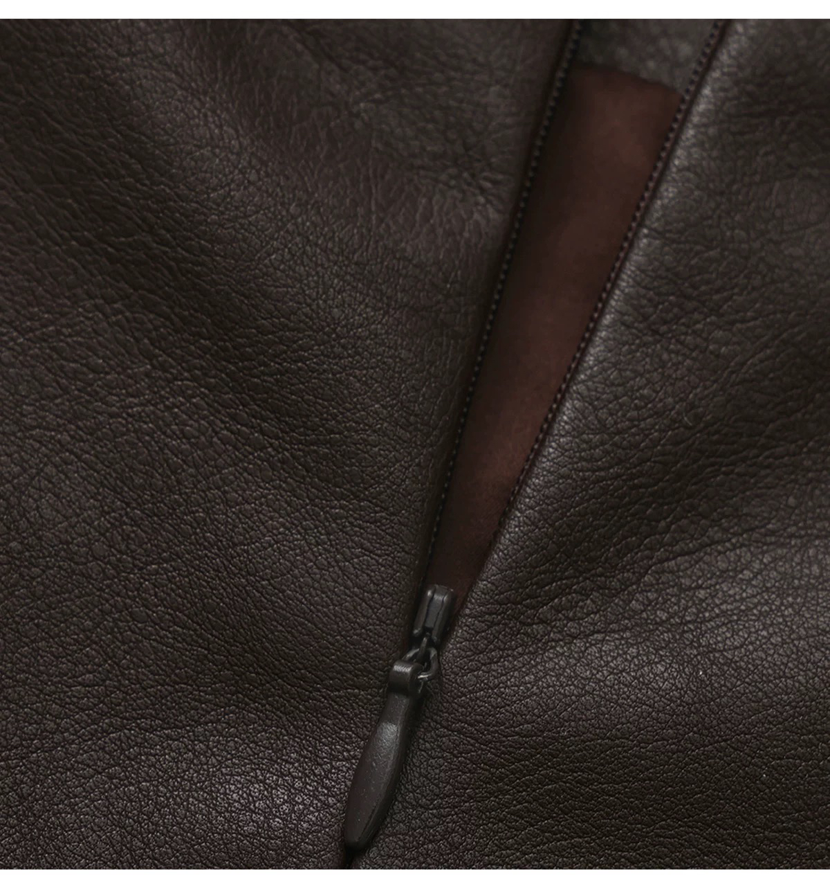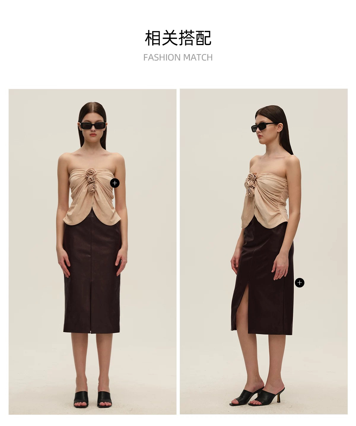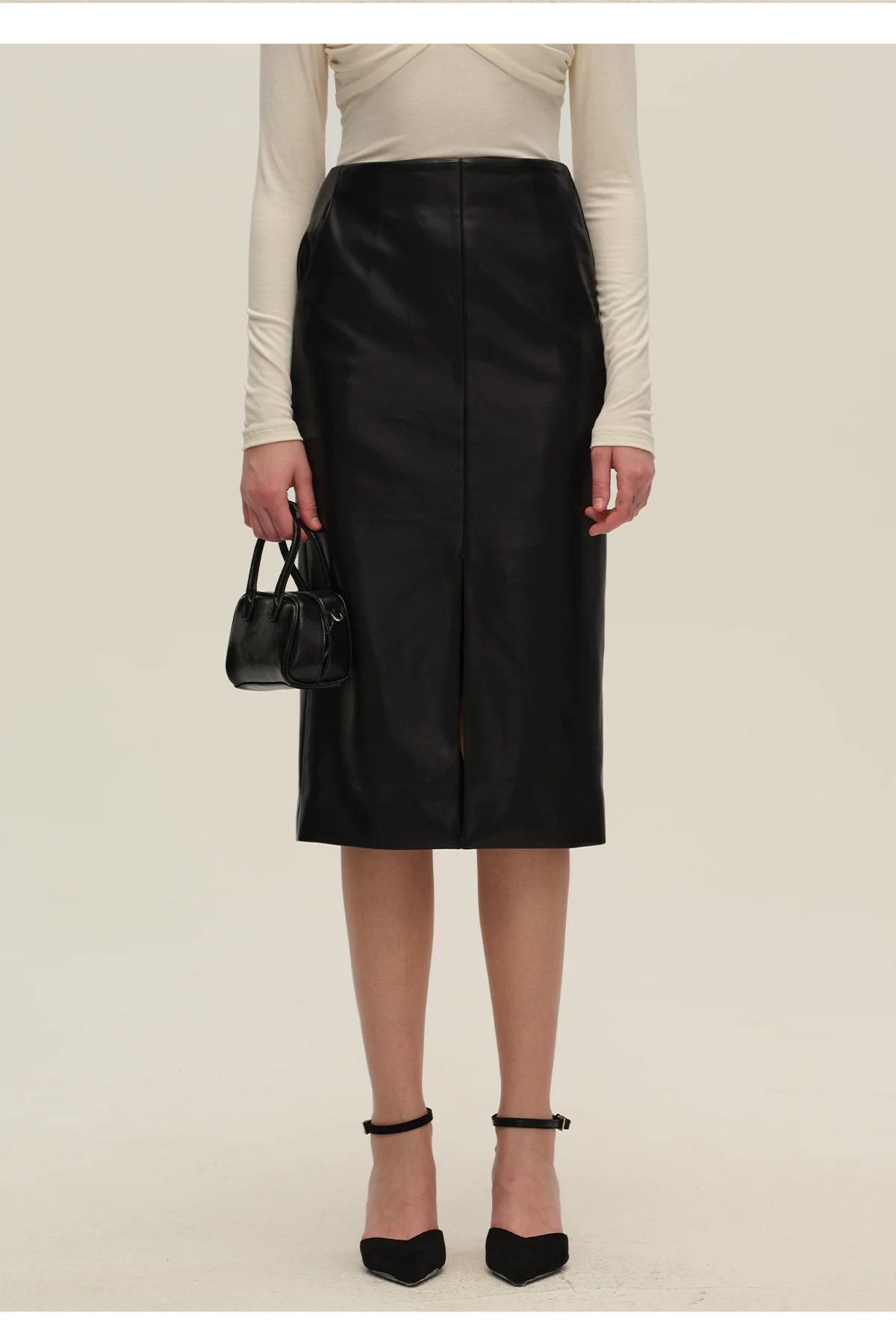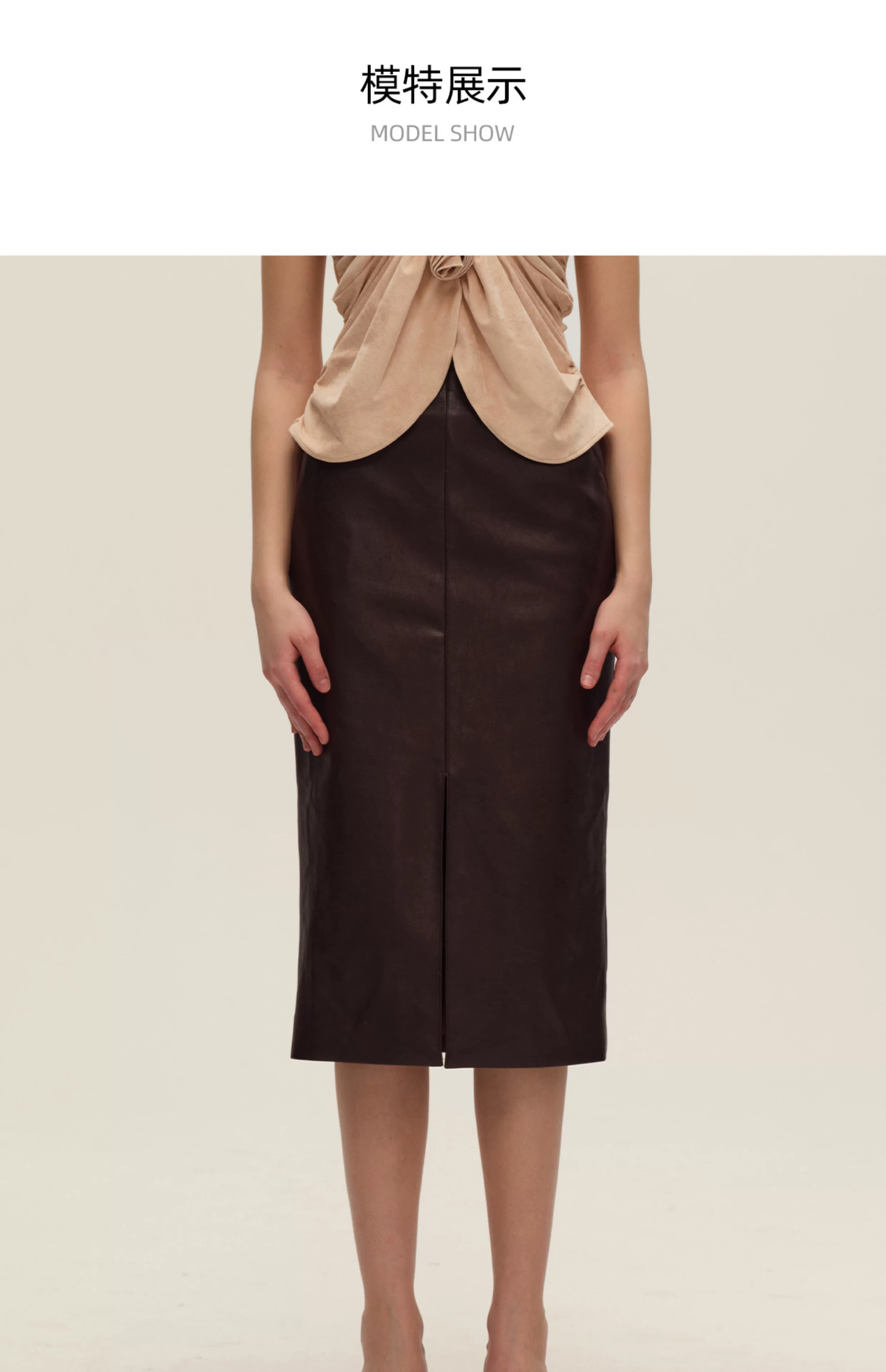 SIJIA|AW2523 深咖前开叉简约皮裙