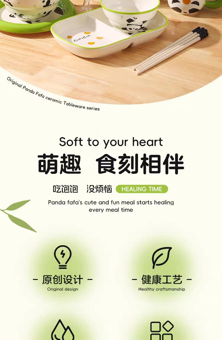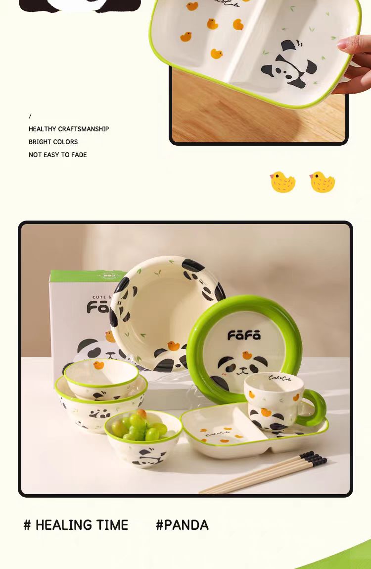 4楼Eubelle欧蓓 川岛屋熊猫可爱餐具套装一人食碗碟碗盘 活动价:13.9-30.9元