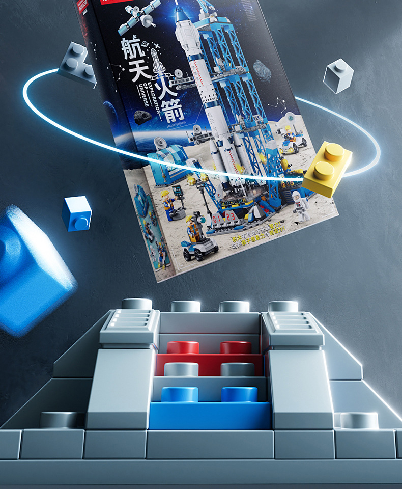 赠灯串【航天同款47cm大尺寸】乐乐兄弟积木拼装颗粒玩具 兼容乐高 宇宙航天火箭模型 高度还原 组建你的火箭基地