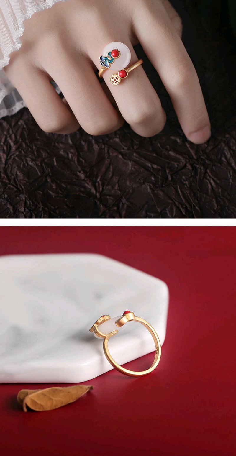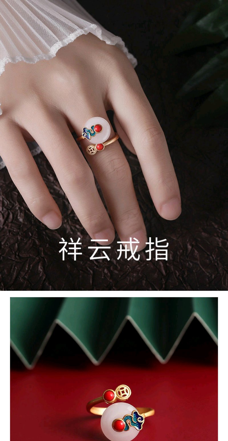 925银中国风祥云戒指女ins小众设计网红复古风开口尾戒礼物