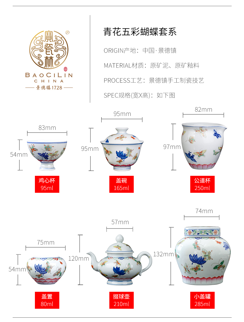 宝瓷林青花五彩蝴蝶套系