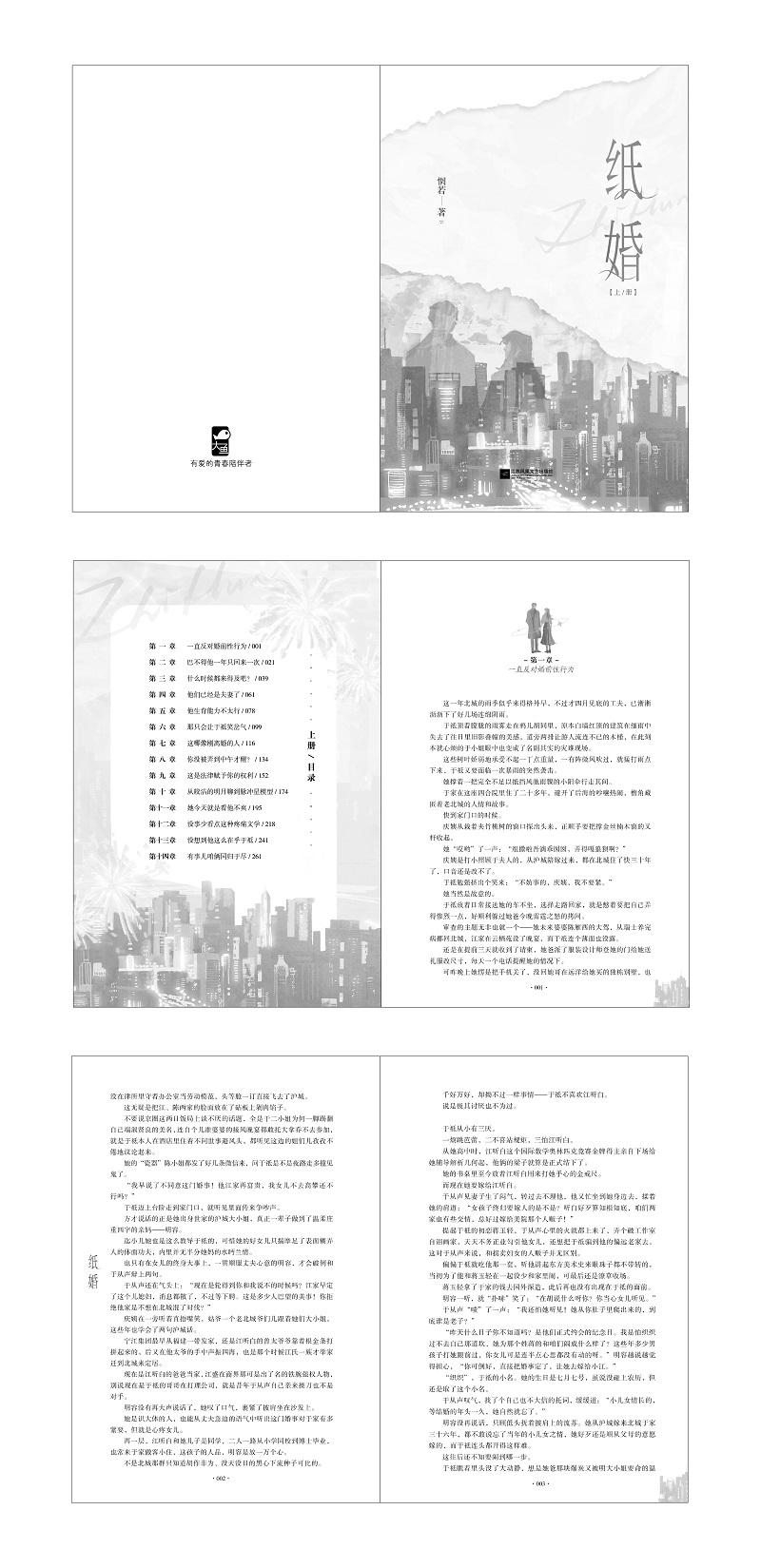 这一年北城的雨季似乎来得格外早,不过才四月见底的功夫,已淅淅沥沥下了好几场连绵阴雨。于祗顶着朦胧的雨雾走在鸦儿胡同里,原本白墙红顶的建筑在细雨中失去了往日里旧影叠幢的美感,道旁两排让游人流连不已的木槿,在此刻本就心烦的于小姐眼中也变成了名副其实的灾难现场。这些树叶娇弱地承受不起一丁点重量,一有阵微风吹过,就猛打雨点下来,于祗又要面临一次暴雨的突然袭击。她撑着一把完全不足以抵挡风驰雨骤的小阳伞行走其间。于家在这座四合院里住了二十多年,避开了后海的吵嚷热闹,檐角藏匿着老北城的人情和故事。快到家门口的时候。庆姨从栽着夹竹桃树的窗口探出头来,正顺手要把撑金丝楠木窗的叉杆收起。她哎哟了一声,;组撒啦吾滴乖囡囡,弄得嘎狼狈啊?庆姨是打小照顾于夫人的,从沪城陪嫁过来,都在京里住了快三十年了,口音还是改不了。于祗勉强挤出个笑来,;不妨事的,庆姨,我不要紧。她当然是故意的。于祗放着日常接送她的车不坐,选择走路回家,就是憋着要把自己弄得惨烈一点。好顺利躲过她爸今晚雷霆之怒的拷打盘问。审查的主题无非也就一个她未来婆婆陈雁西的大驾,从瑞士养完病挪回京城,江家在云栖苑设了晚宴,而于祗却连个薄面也没露。还是在提前三天就收到了请柬,她爸派了服装设计师登她的门给她送礼服改尺寸,每天一个电话提醒她的情况下。可昨晚上她愣是把手机关了,没回她哥在远洋给她买的独栋别墅,也没在律所里守着办公室当劳动模范,头等舱一订直接飞去了沪城。这无疑是把江陈两家的脸面放在了砧板上剁肉馅子。不要说京圈这两日饭局上谈不厌的题目,全是于二小姐为何一脚踢翻自己端淑贤良的美名儿,连自个儿准婆婆的接风晚宴都敢托大拿乔不去参加,就是于祗本人在酒店里住着不问世事避风头,都听这边的姐们儿孜孜不倦地议论起来。她的瓷器陈小姐都发了几条微信来,问于祗是不是夜路走多了撞见鬼了。;我早说了不同意这门婚事!他江家再富贵,我女儿不去高攀还不行吗?于祗迈上台阶走到家门口,就听见里面传来争吵声。方才说话的正是她出身世家的沪城大小姐,真正一辈子做到了温柔庄重四字的亲妈明容。迄小儿她也是这么教导于祗的,可惜她的好女儿只揣摩足了表面糊弄人的体面功夫,内里并无半分她妈的水眄兰情。也只有在女儿的终身大事上,一贯顺服丈夫心意的明容,才会破例和于从声辩上两句。于从声还在气头上,;现在是轮得到你和我说不的时候吗?江家早定了这个儿媳妇,消息都散了,不过等下聘,这是多少人巴望的美事!你拒绝他家是不想在京城混了对伐?庆姨在一旁听着直捂嘴儿笑,姑爷一个老北城爷们儿跟着她们大小姐,这些年也学会了两句沪城话。寕江集团最早从福建一带发家,还是江听白的曾太爷爷靠着根金条打拼起来的,后又在他太爷的手中声振四海,也是那个时候江氏一族才举家迁到京城来定居。现在是江听白的爸爸当家,江盛在商界那可是出了名的铁腕强权人物,别说现在是于祗的哥哥在打理公司,就是昔年于从声自己亲来操刀也不是对手。明容没有再大声说话了,她叹了声气,裹紧了披肩坐在沙发上。她是识大体的人,也能从丈夫急迫的语气中听出这门婚事对于家有多紧要,但就是心疼女儿。再一层,江听白和她儿子是同学,二人一路从小学同校到博士毕业,也常来于家做客小住的,这孩子的人品明容是放一万个心。不是京里那一群只知道胡作非为,没天没日的黑心下流种子可比的。但千好万好。却拗不过一样事情。于祗不喜欢江听白。说成是极其讨厌也不为过。