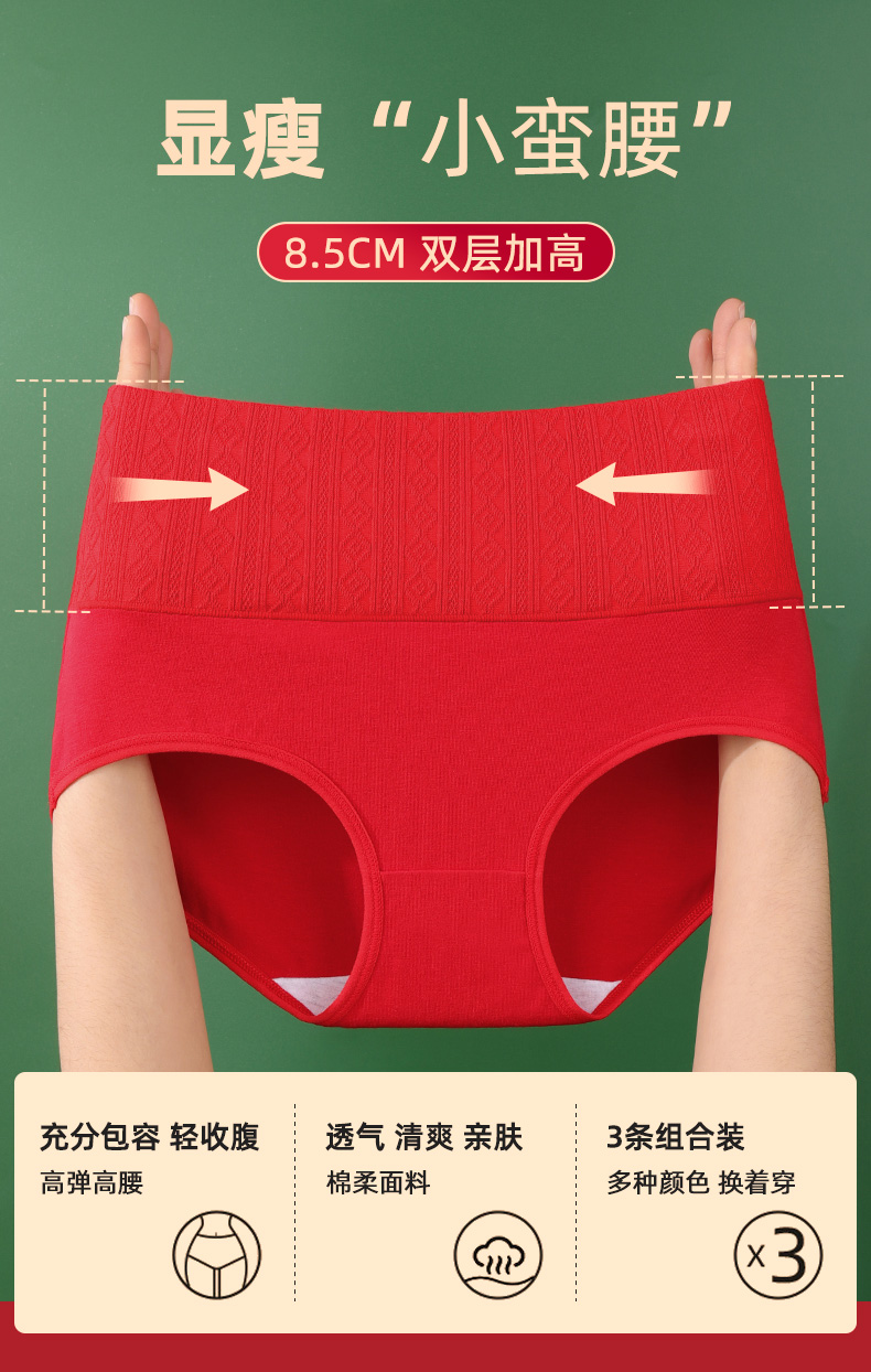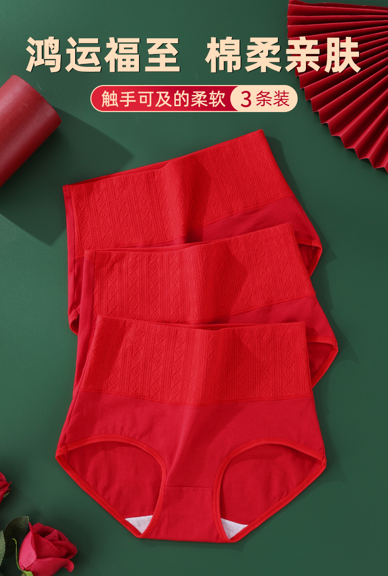 雅黛丽本命年大红内裤女高腰收腹2025蛇年新款纯棉红色结婚礼物女