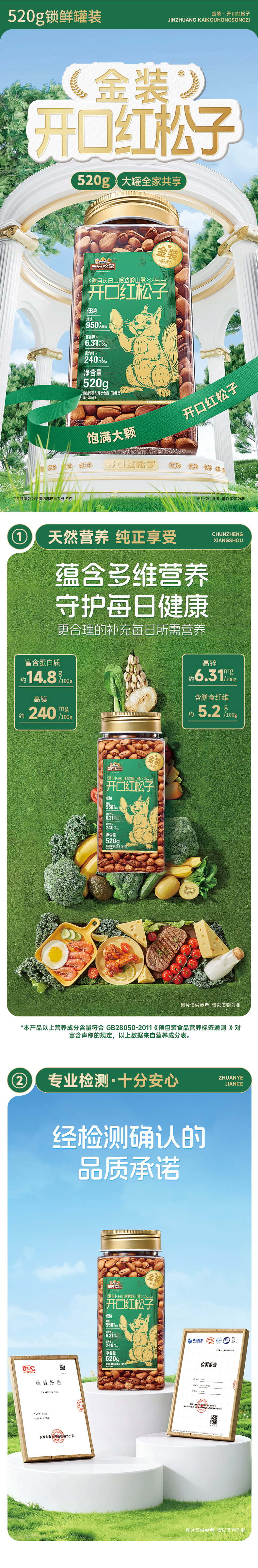 【金装系列罐装坚果 】三只松鼠 金装长白山开口松子520g-fx