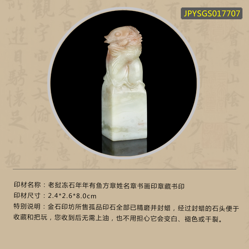 孤品17707老挝冻石年年有鱼方章姓名章书画印章藏书印-2.4*2.6*8.0cm