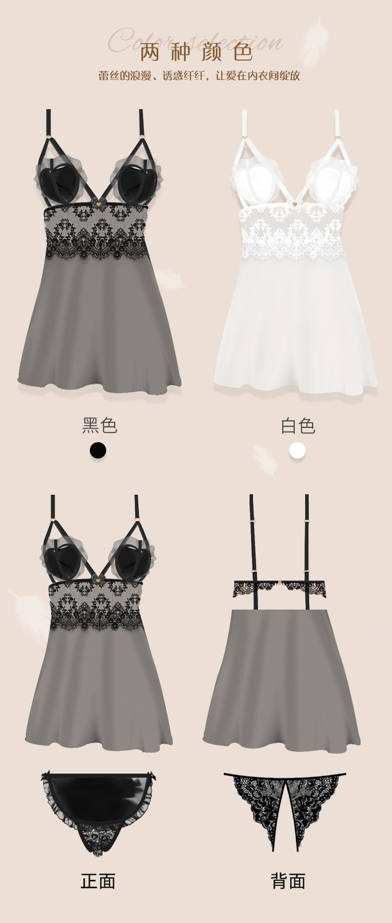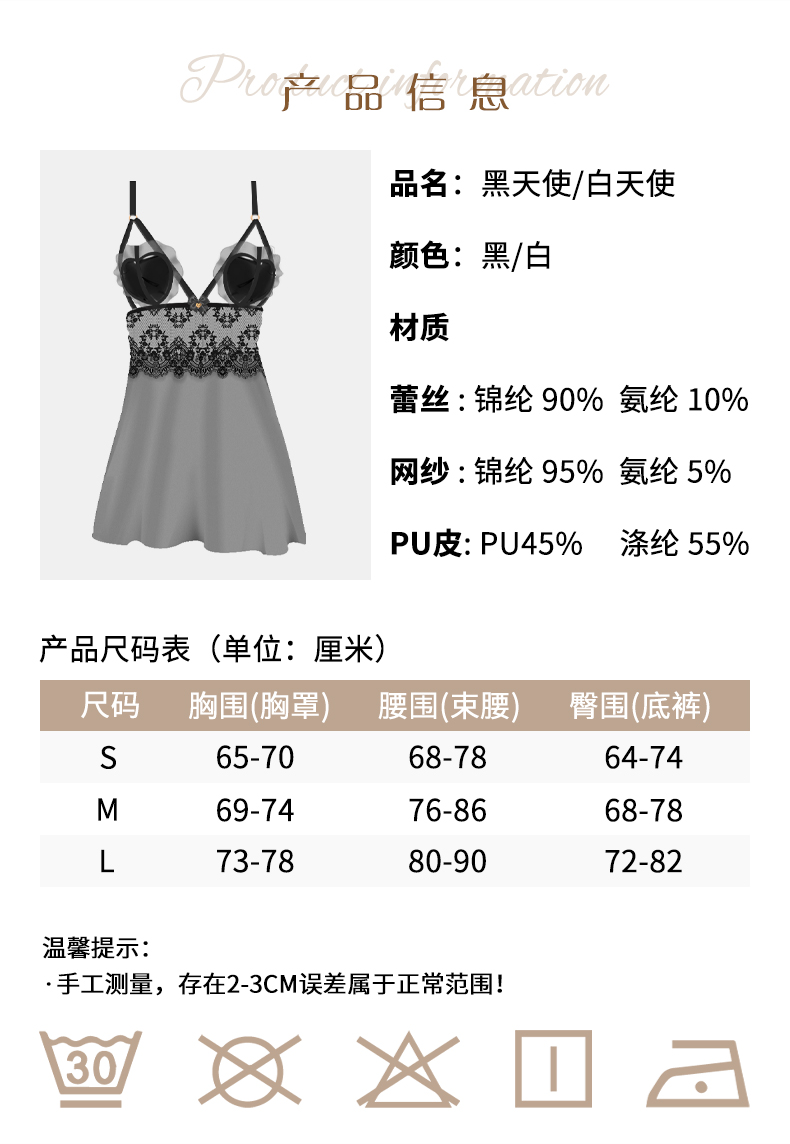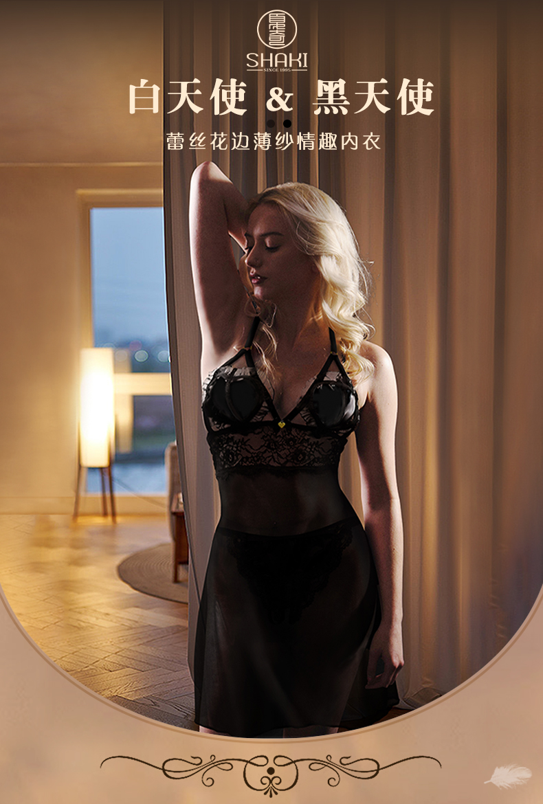 透视性感情趣睡衣 诱惑吊带透明网纱黑白天使情趣内衣