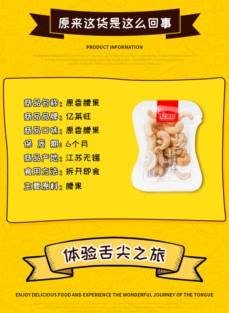 【食品酒水】亿莱旺 带衣腰果仁5斤/袋带皮原味紫衣腰果炒货干果坚果休闲零食