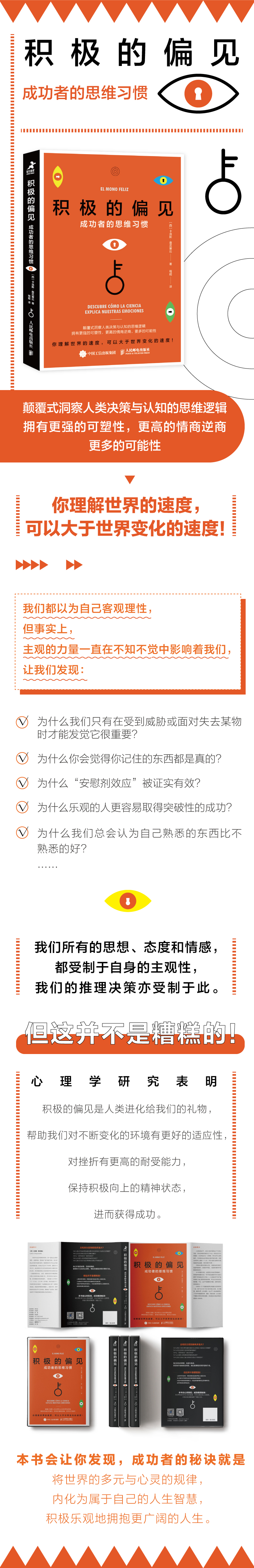 在大多数情况下,你的大脑已经做出了大*分决定,而你甚**没有意识到发生了什么;你的记忆可以欺骗你:你的大脑当然会记住*些事情,但它也可以虚构细节,并总是设法让你相信它告诉你的东西;甚*当你在街上遇到*个人时,它已经替你决定他是否构成威胁,但你却毫*知情…… 尽管经过漫长的进化过程,大脑学会的技能已越来越复杂,但相较于理性,大脑仍旧偏向于依赖直觉和感性。 本书所要探讨的,正是我们内在的思维模式。作者富有颠覆性地以—种开放且幽默的方式为我们解释了思维是如何工作的——人们是如何*知*觉地相信了自己更愿意相信的事,并以此为经验去处理问题。*过,这并*是糟糕的问题,反而有很大的积*意义! 作者将*个个有趣的故事与有趣的实验联系在*起,**分析了我们如何做出决策、应对困境、探索*、参与冒险,还从**样的角度探讨了生命中最重要的事:健康、财富与爱,以及通过了解我们思考*的逻辑,发掘成为更加幸福与成功的人的办法。