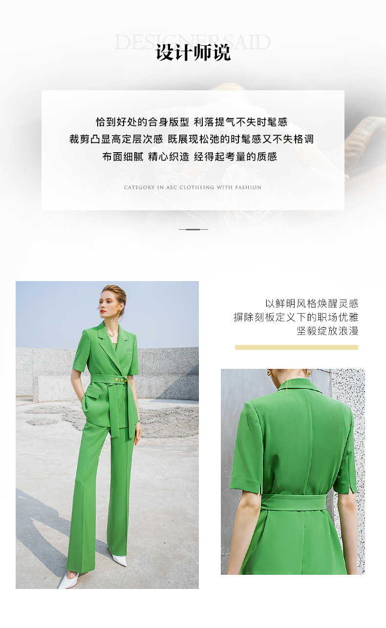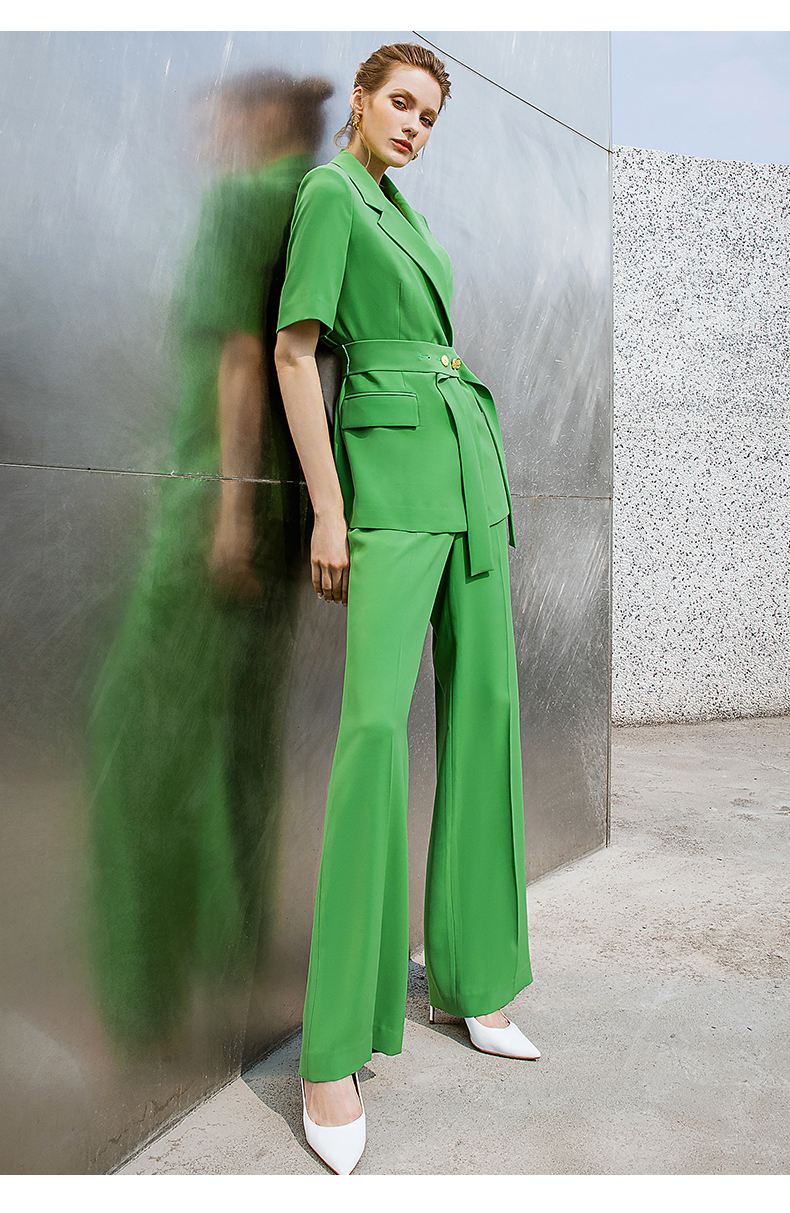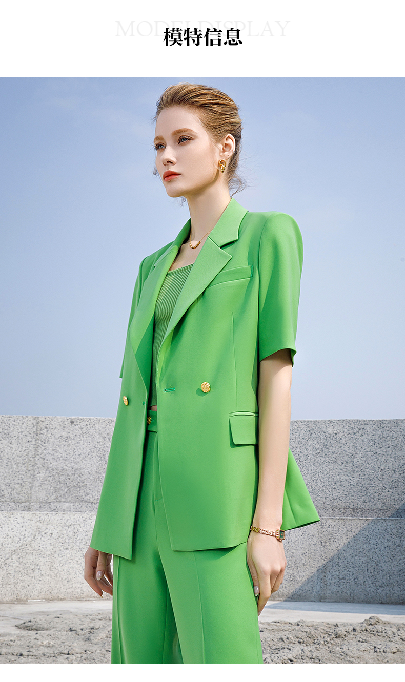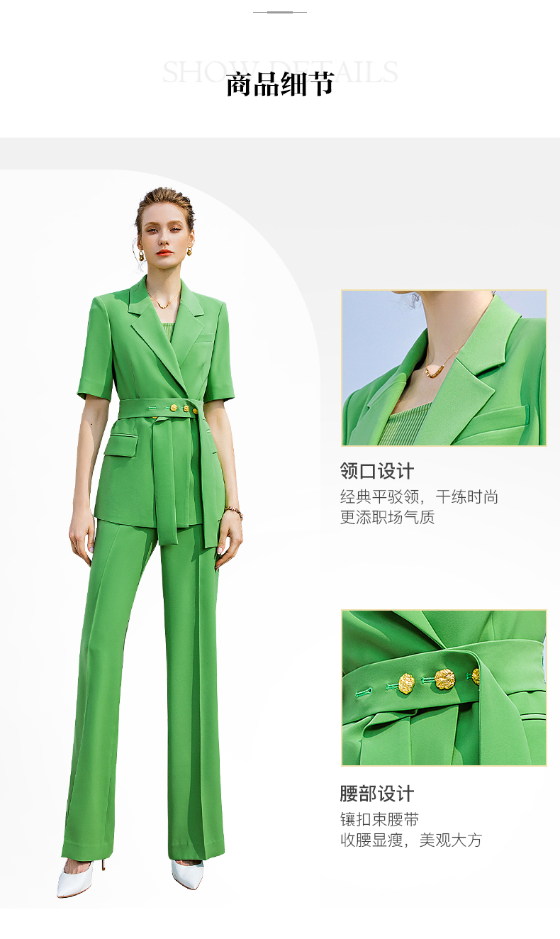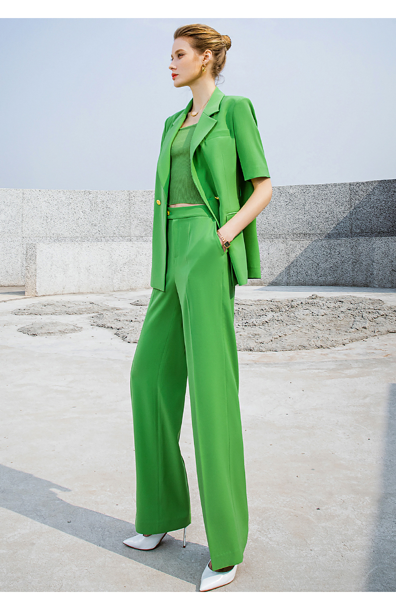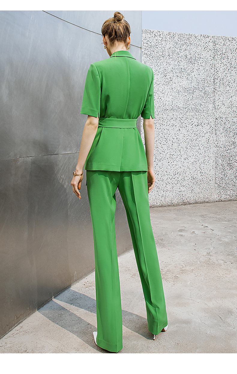 夏季新款高端绿色短袖西装套装女套裤时尚洋气西服休闲外套气质