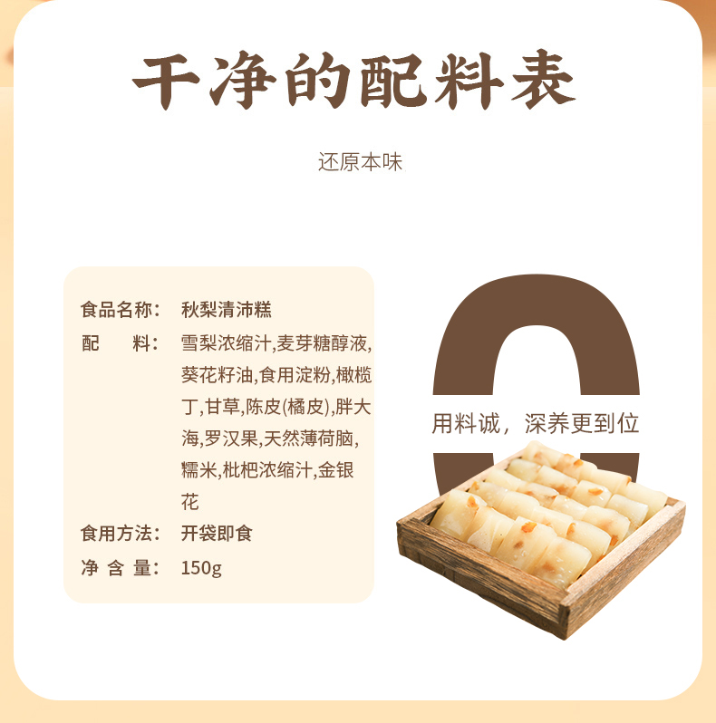 【健康专享】秋梨清沛糕 温润入喉 四季滋养 清香甜蜜 独立包装 150g/盒 18-22小包