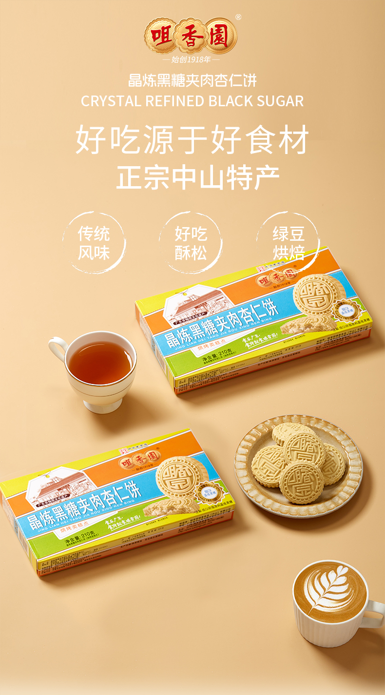 咀香园【晶炼黑糖夹肉杏仁饼】 广东中山特产休闲零食饼干怀旧糕点 独立包装