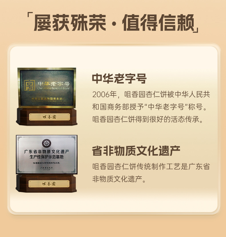 - 百年品牌,中华老字号;杏仁饼创始者~