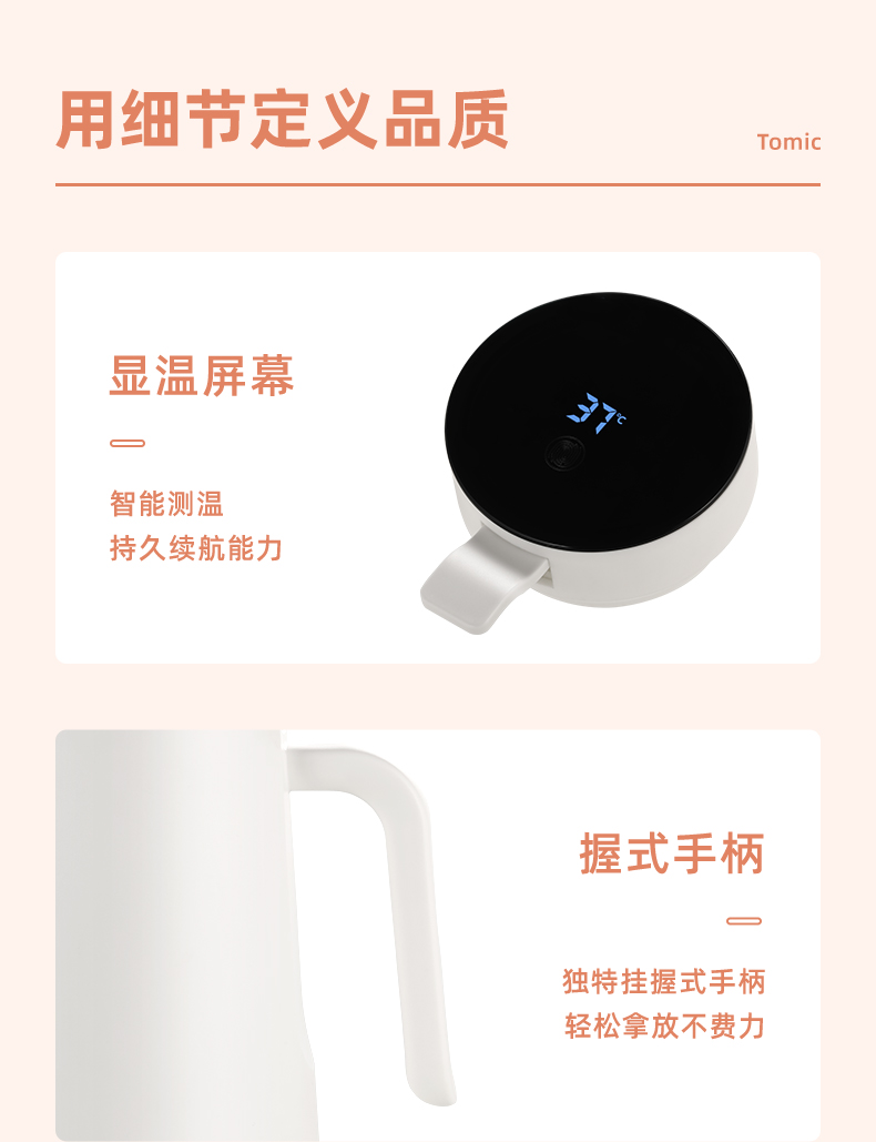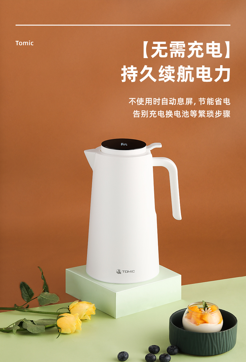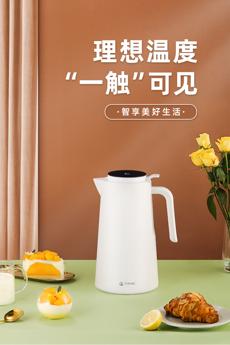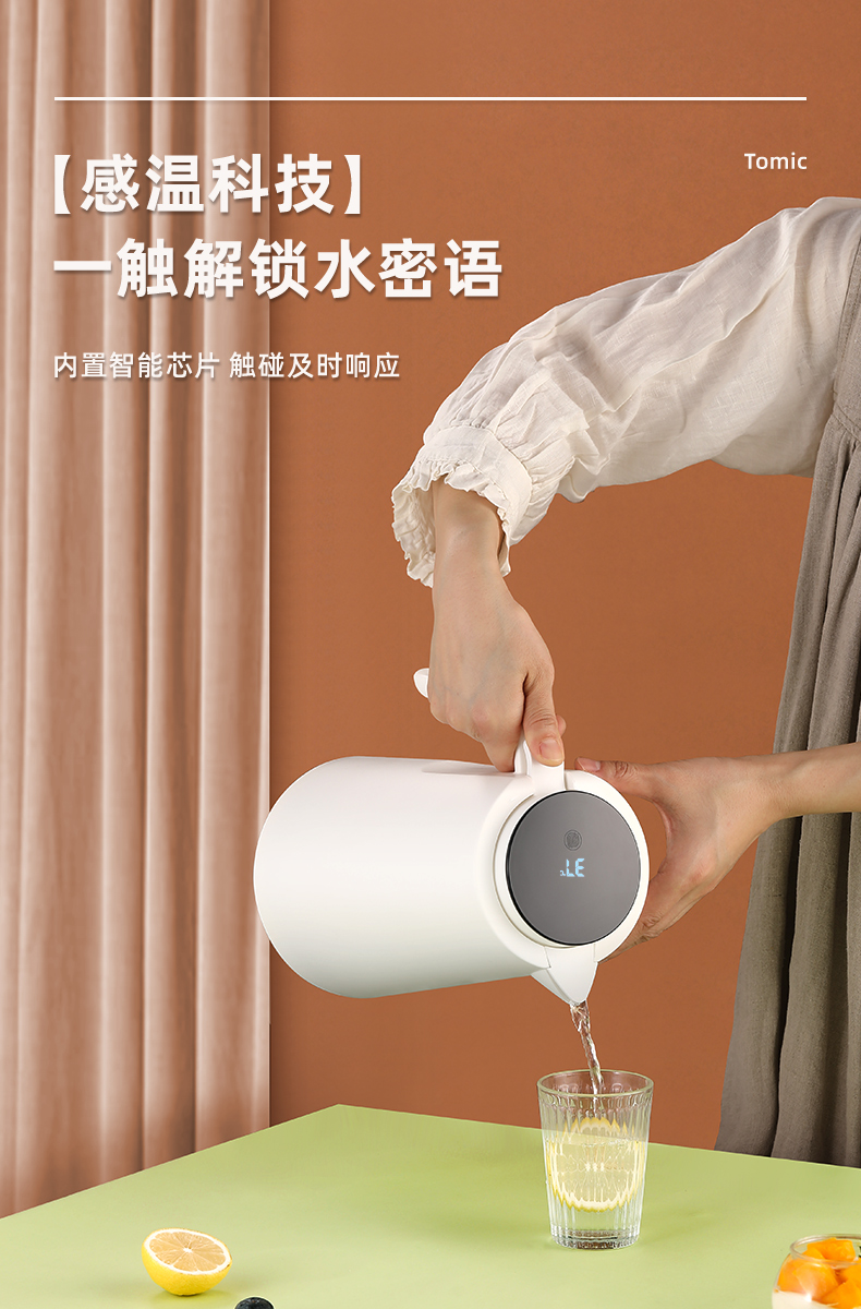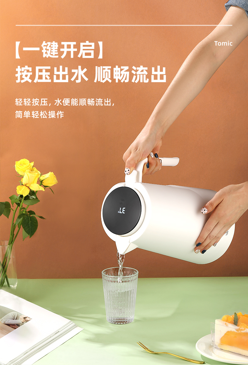 特美刻TOMIC智能保温壶家用办公热水瓶1.5L大容量玻璃内胆保温水壶按压式开水瓶暖水壶特美赢杯 TJ10010 白色