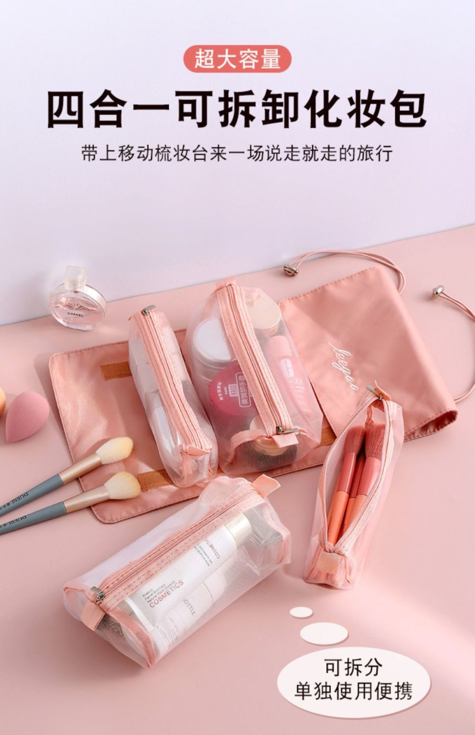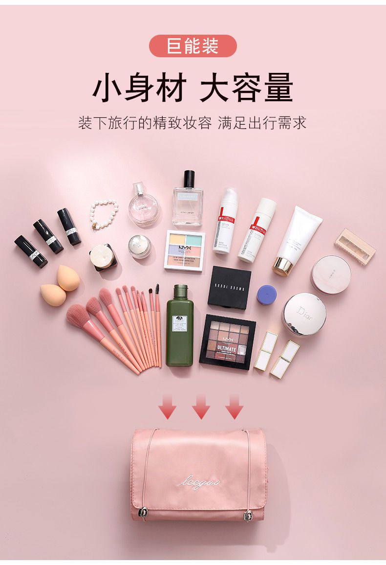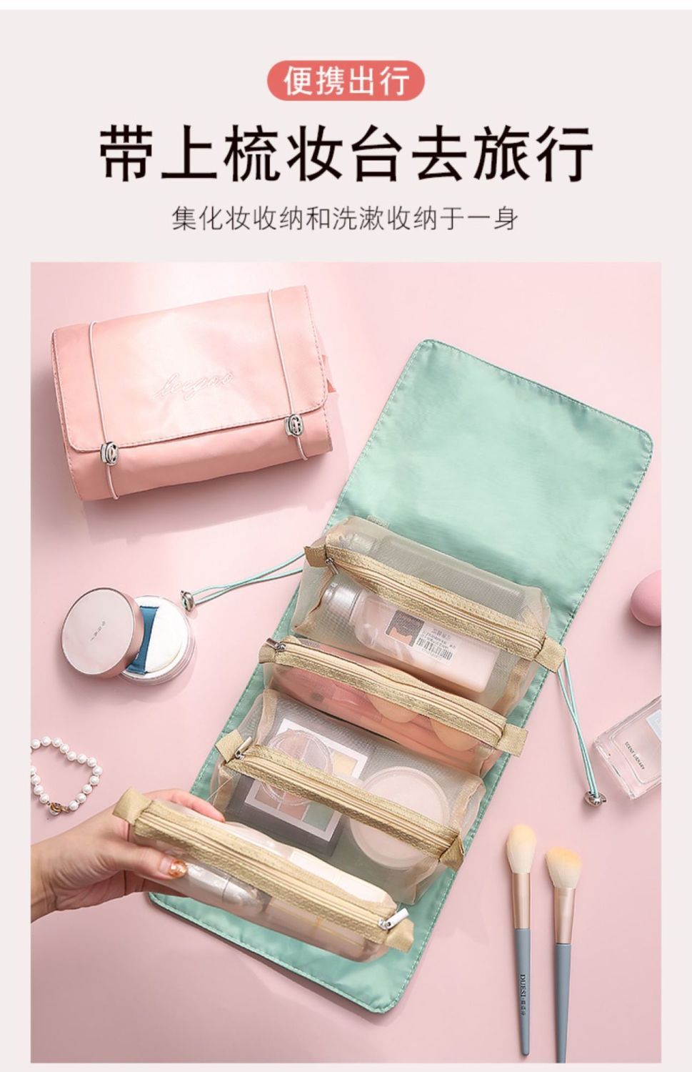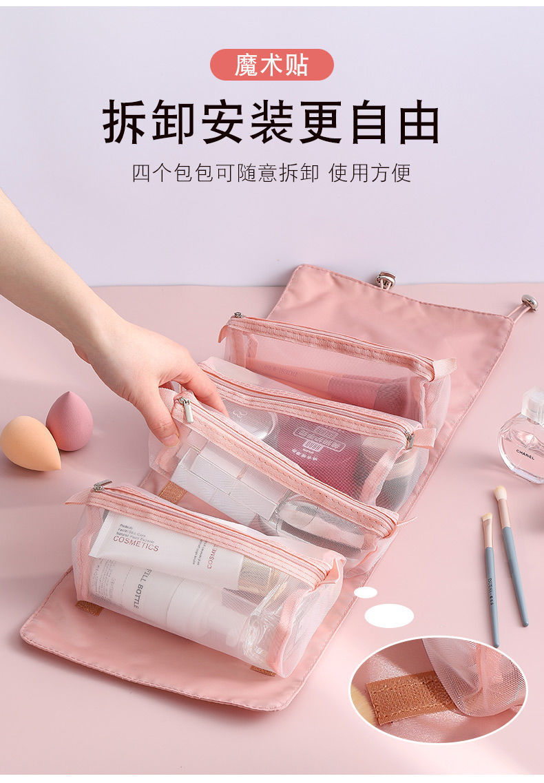 【带上梳妆台去旅行!超便携】四合一可拆卸化妆包,把梳妆台和洗漱间一起带走!便携大容量旅行可折叠收纳包,爽肤水乳液口红面膜洗发水沐浴露一网打尽!家庭整理