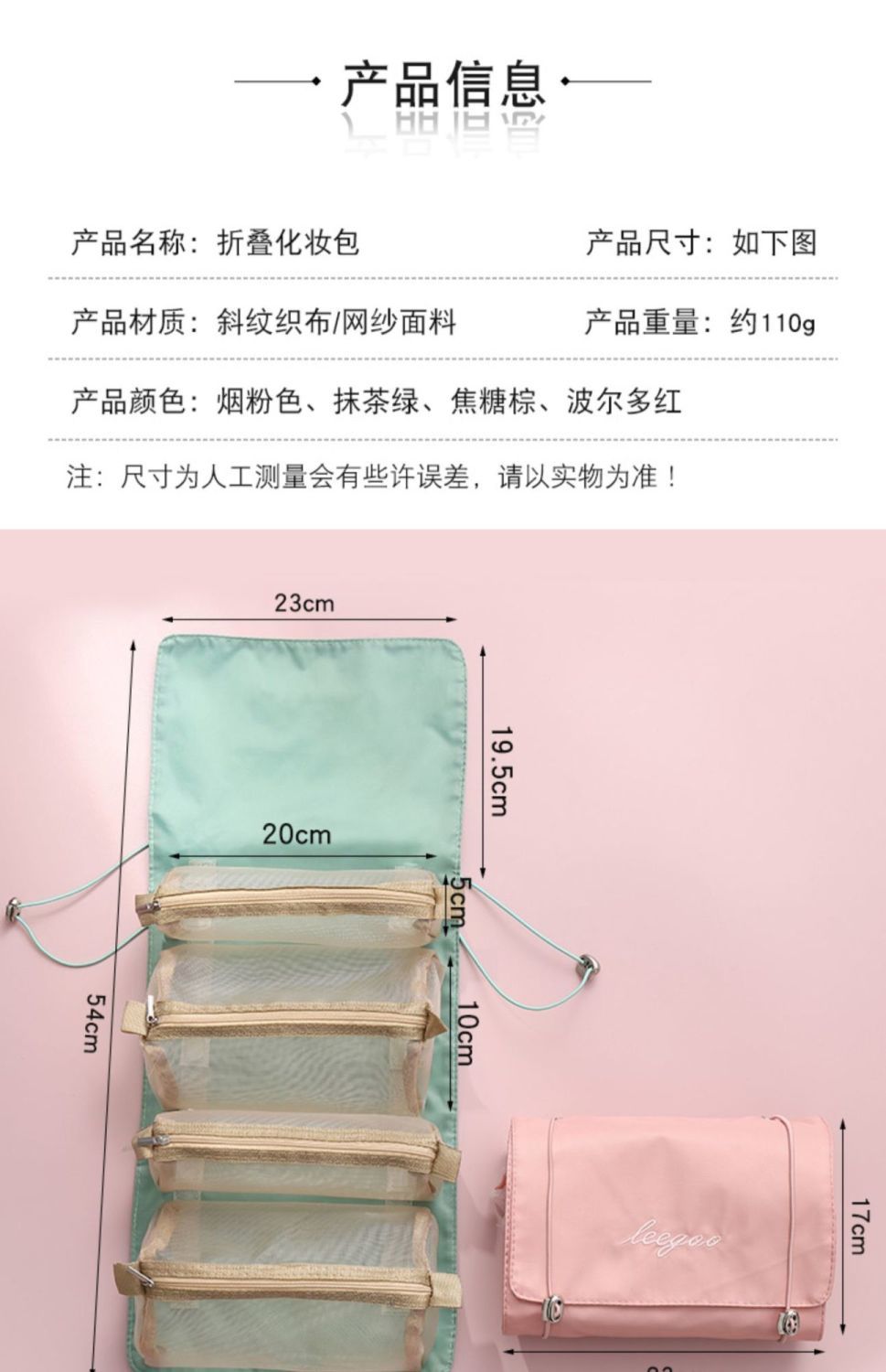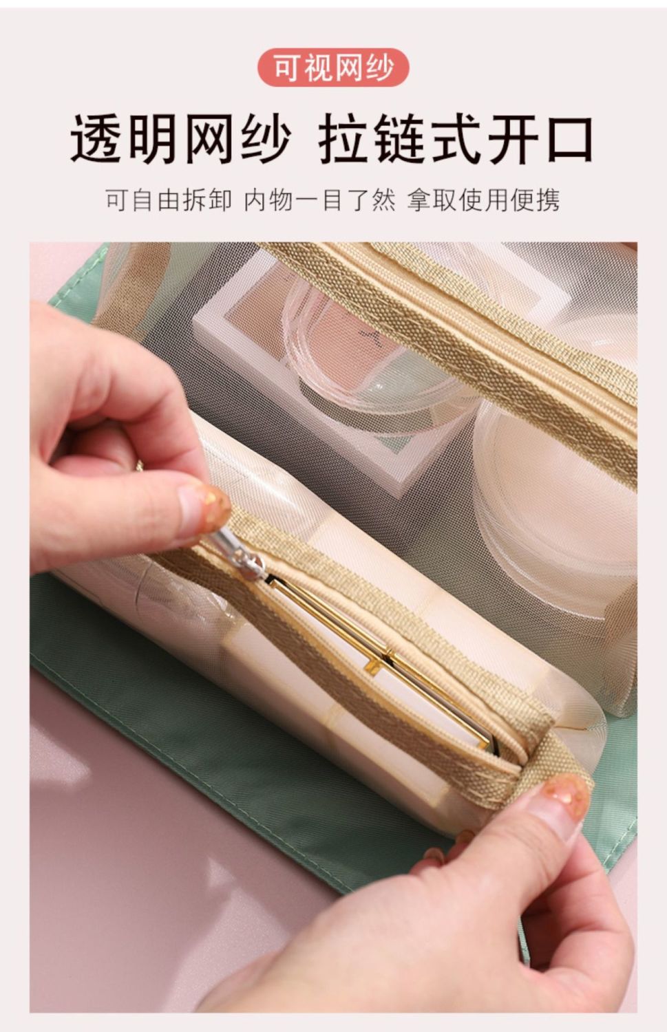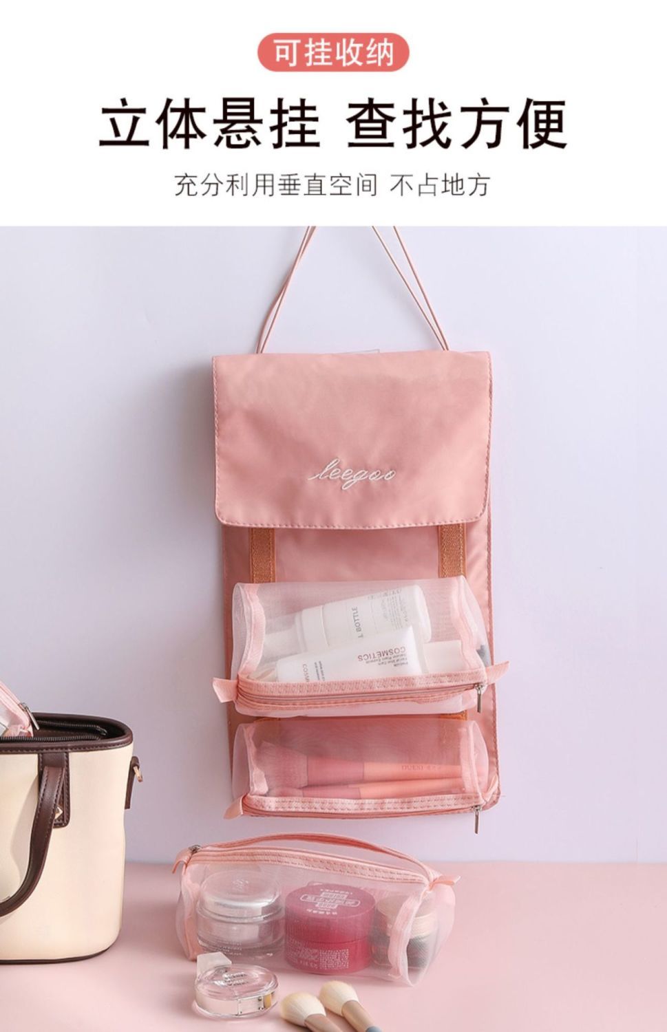 【带上梳妆台去旅行!超便携】四合一可拆卸化妆包,把梳妆台和洗漱间一起带走!便携大容量旅行可折叠收纳包,爽肤水乳液口红面膜洗发水沐浴露一网打尽!家庭整理