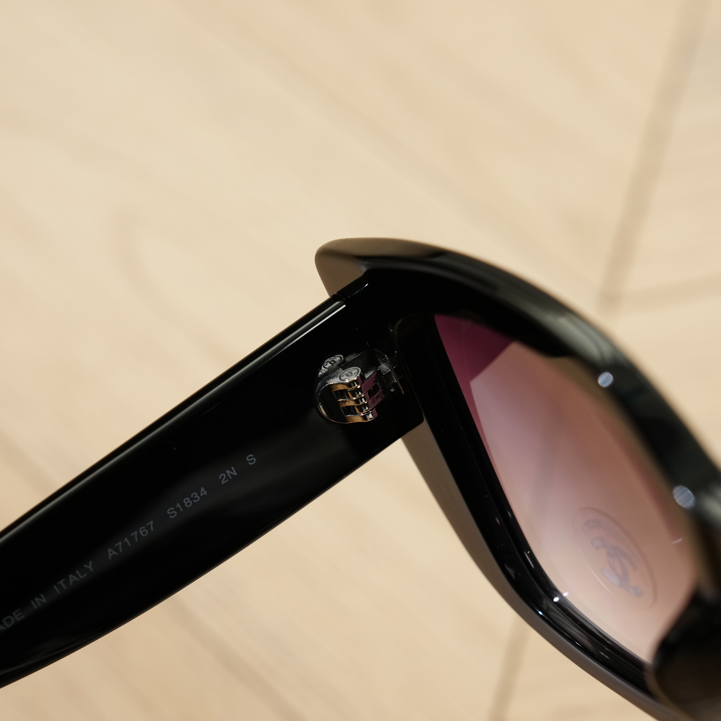 镜腿处品牌logo以非遗螺钿工艺打造,精选天然贝壳经“煮螺”“折贝”多道工序磨制至0.06毫米薄度,手工嵌入黑漆基底,经反复髹漆、打磨而成,随光线角度变幻呈现流光溢彩的视觉效果,尽显东方工艺与西方奢华的完美融合