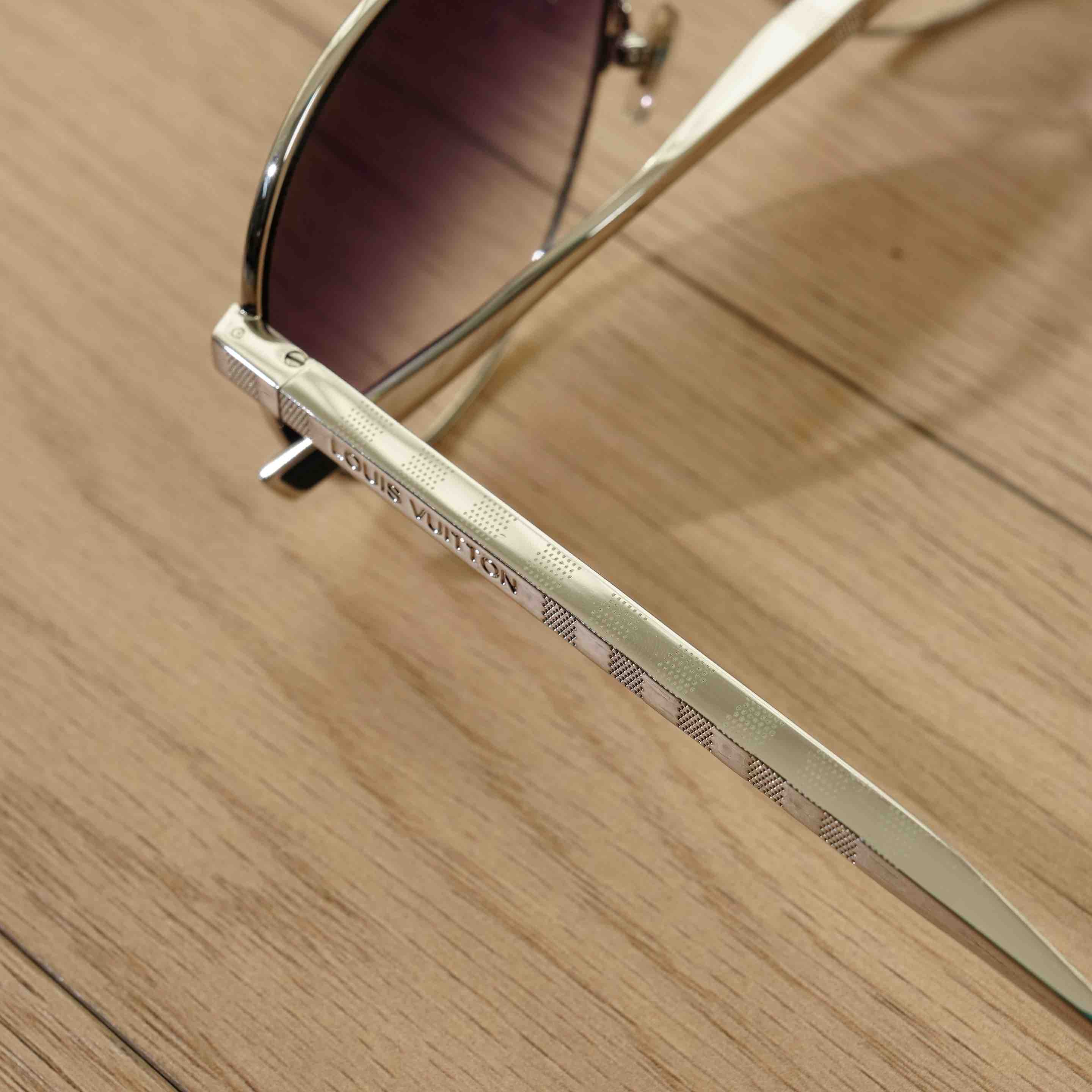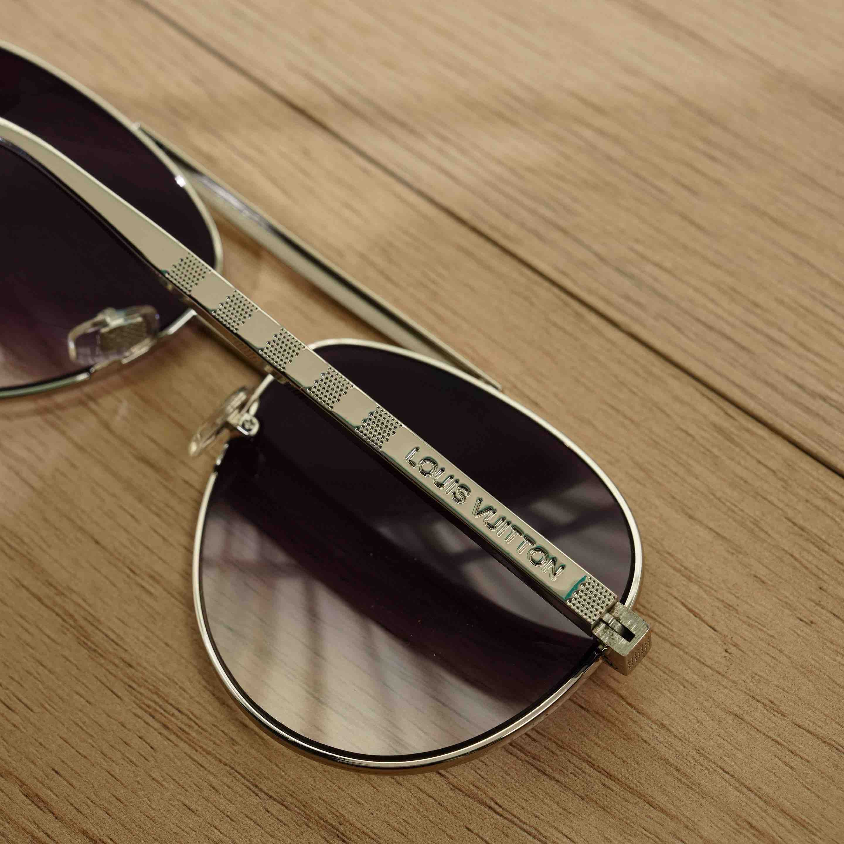 对于男士,这款墨镜绝对是不可拒绝的一款好货哈,拿在手里沉甸甸的,超有质感的金属镜框打造,经典的飞行员太阳眼镜,在镜脚和鼻托处饰有暗面和亮面金属构成的品牌经典Damier图案