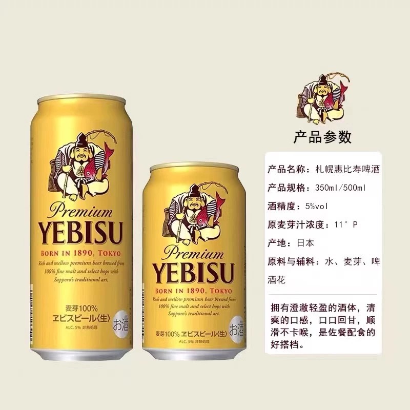 日本进口札幌YEBISU惠比寿100%全麦芽金麦啤酒 5.0%vol 350ml